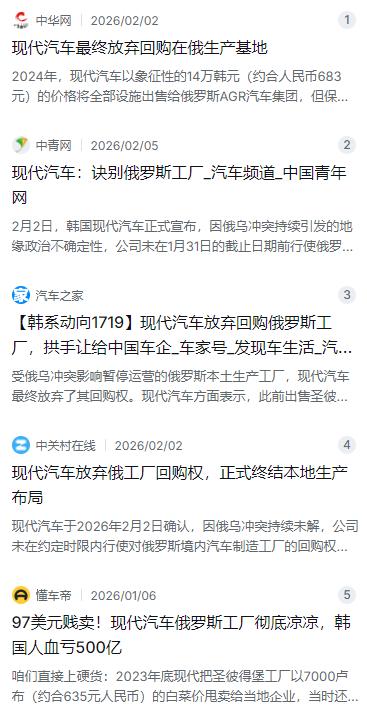 铁了心要灭掉中国?一股可怕力量来了!这回不是美国出手,普京笑到最后。   麻烦看官老爷们右上角点击一下“关注”,既方便您进行讨论和分享,又能给您带来不一样的参与感,感谢您的支持!   2026年2月2日,韩国现代汽车正式宣告放弃对俄罗斯圣彼得堡工厂的回购权,彻底告别这块曾经深耕多年的土地。这座年产能超过20万辆的工厂,曾经是现代汽车在海外最得意的布局之一,如今却以十几万韩元的象征性价格永远留在了俄罗斯。谁能想到,当年意气风发杀入俄罗斯市场、巅峰时期与本土拉达分庭抗礼的现代汽车,如今竟然连97美元的“赎身费”都掏不出来。这背后,不只是韩国人的血亏,更是一场席卷全球汽车产业的地震。现代为了这次撤退,直接扛下了2870亿韩元、约合人民币14亿元的损失,真金白银打了水漂,连个水花都没溅起来。   不过话说回来,现代汽车还不是最惨的。2022年俄乌冲突爆发之后,西方国家对俄罗斯的制裁像多米诺骨牌一样倒下,直接掐断了汽车行业的关键供应链和支付通道。德国大众关了卡卢加的工厂,日本丰田停了圣彼得堡的生产,法国雷诺更是干脆利落地把手里的伏尔加汽车股份以1卢布的“白菜价”甩卖给了俄罗斯官方机构,同时吞下了将近20亿欧元的资产减记。有数据统计,冲突前外资品牌占俄罗斯车市的份额高达七成左右,一夜之间,这些巨头撤得干干净净,生产线停摆,经销商关门,本土的拉达也因为供应链断裂产能直接腰斩。俄罗斯老百姓拿着钱满大街找不到新车,整个市场像被抽空了的大池子,干涸得吓人。   就在西方车企一个个仓皇离场、留下满地狼藉的时候,俄罗斯人环顾四周,发现了一个意想不到的帮手——中国企业。2022年,中国品牌在俄罗斯的市场份额还微不足道,只有7%左右。但到了2023年,这个数字就冲到了接近50%。2024年上半年,中国品牌的市场占有率飙到了58%,莫斯科街头,每两辆新车里就有一辆来自中国品牌。长城旗下的哈弗、奇瑞、吉利、长安、捷途等品牌全面铺开,销量榜前十名里中国品牌占了七八个席位,这阵势,以前想都不敢想。从2022年到2024年,中国对俄罗斯的汽车出口量从16万辆猛增到了115.8万辆,短短两年翻了七倍多。   更厉害的是,中国车企不只是把车卖过去,而是真真正正在俄罗斯扎下了根。长城在俄罗斯的图拉工厂早已实现本地化生产,奇瑞利用西方车企留下的闲置厂房搞起了半散件组装,吉利与白俄罗斯合资绕开关税壁垒,将零部件批量运过去再组装。供应链方面,中国汽车产业经过多年发展,从发动机到电子系统,绝大多数零部件都能自研自产,不像欧美日系车企那样一断供就彻底瘫痪。产品层面也下了功夫,针对俄罗斯极寒的冬天专门设计耐寒电池和防冻液,底盘加厚对付冰雪路面,座椅加热都成了标配,车机系统也换上了地地道道的俄语。这已经不是单纯的卖车,而是从销售到售后到供应链的全套本地化布局。   俄罗斯政府这边呢,也没闲着。他们瞅准西方撤离的机会,搞起了本土化的产业复兴计划。拉达品牌靠着每辆车30万卢布的政府补贴,把市场份额从不到三成拉回到了将近四成,但市场份额实际上从2022年的30.6%下降到了27.8%左右,靠补贴撑起来的表面繁荣背后,技术短板依然明显。汽车电控系统和核心芯片等关键零部件,制裁后仍然高度依赖外部供应,所谓“进口替代”某种程度上是从西方依赖转成了东方依赖。但无论如何,拉达总算借着这股东风,重新坐回了俄罗斯销量榜首的位置。   从2022年到2026年,这场全球汽车产业的“乾坤大挪移”,让人看得目瞪口呆。曾经叱咤风云的西方汽车巨头,如今在俄罗斯的街头成了稀罕物,取而代之的是满大街的中国车标。雷诺、丰田、大众、现代这些名字,对俄罗斯普通消费者来说,越来越像一个遥远的记忆。而中国车企在这场洗牌中,从一个边角料的角色,一举跃升为俄罗斯汽车市场的核心玩家。   现代汽车这次彻底退出俄罗斯,标志着一个时代的终结。从2022年冲突爆发到2026年回购权到期,现代汽车始终没能等到局势缓和的那一天。它曾经寄望于两年的回购窗口,想着只要俄乌冲突一结束就能重返市场,可地缘政治这盘棋,谁也算不准下一步怎么走。如今,它在圣彼得堡的两座工厂已经被俄罗斯的AGR汽车集团改头换面,生产线被拆的拆、改的改,甚至部分已经用于生产俄罗斯本土品牌的车型。就算哪天现代想回来,这些工厂也未必还是当年的模样了。   全球汽车产业的版图,就这样在战火和制裁的夹缝里,悄然改写了方向。欧美车企的资本和技术,曾经是俄罗斯市场的绝对主导,如今却成了昨日黄花。中国车企抓住的,不仅是市场空白的窗口期,更是一个深度嵌入俄罗斯工业体系的历史机遇。从卖整车到建工厂,从输出产品到输出供应链体系,中国汽车产业正在完成一场从量变到质变的跨越。而这一切的起点,不过是一个谁都没想到的局面:西方车企自己亲手把经营了几十年的市场拱手让了出来,为中国车企铺好了路。