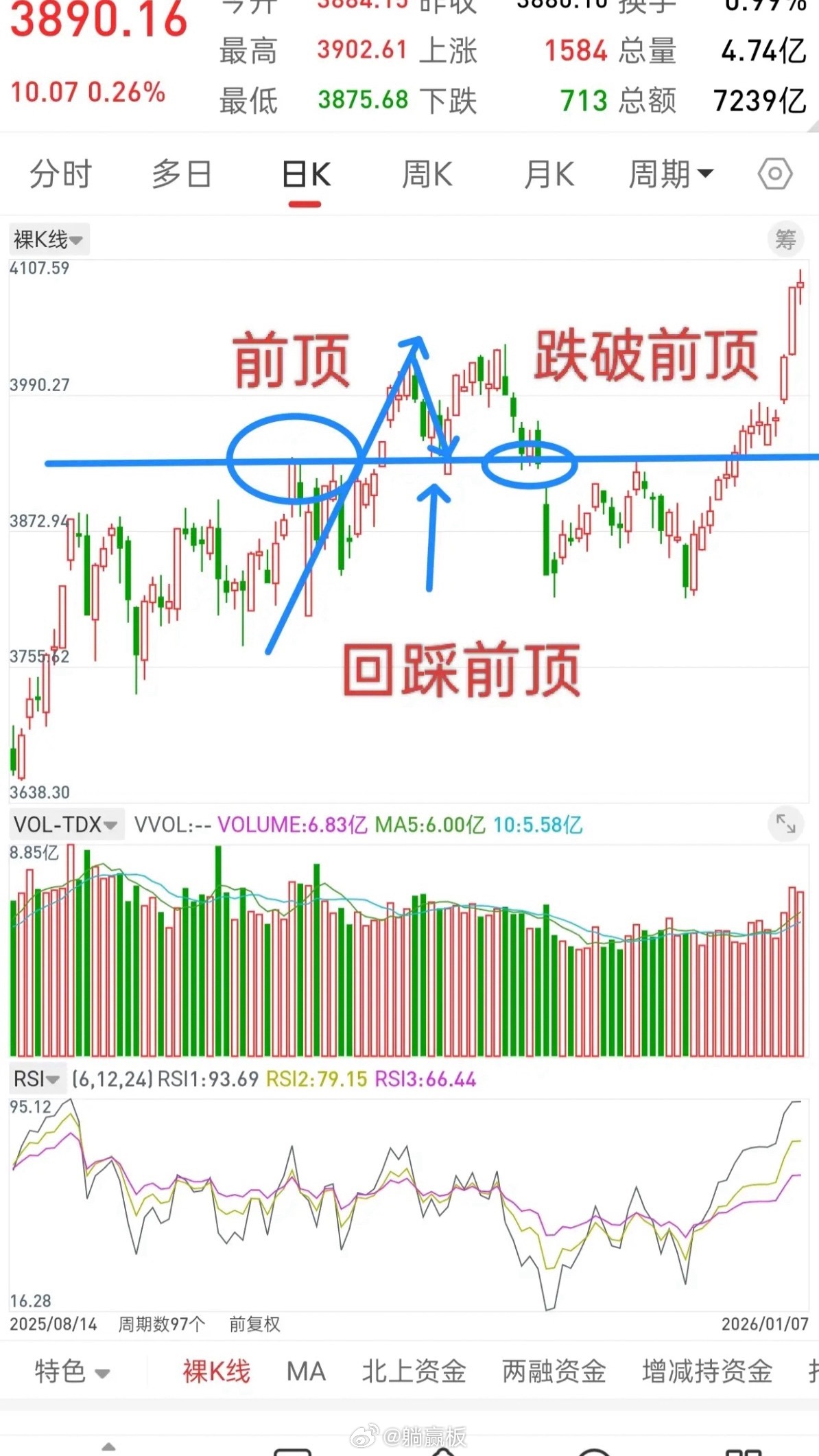 它跟指数一样,为啥去年11.3-11.5回踩前顶3936平台,后面就启动了,以及11.20号跌破前顶,后面就加速下跌,包括今年2.2-2.3号也是,回踩前顶4025附近,启动一波主升,后面一直到3.19号跌破前顶,加速下跌。