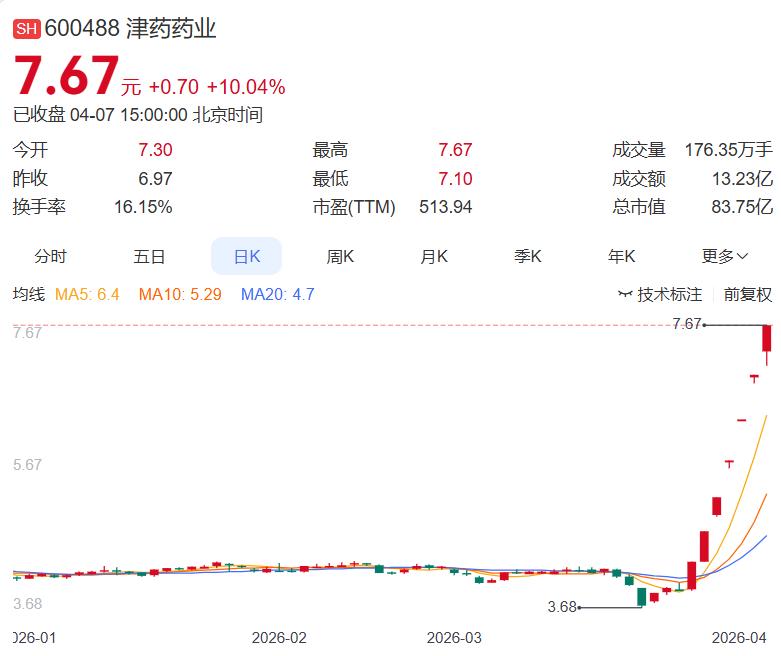 2026年4月7日多家公司发布利空消息,1家公司发布了减持超过1% 一,减持公告 和而泰:控股股东、实控人减持超过1%股份实施完成 二,人气龙头、热门股 津药药业:7连板 新能泰山:10天8板 汇源通信:3连板 大胜达:14天7板 国晟科技:6天3板 齐翔腾达:4天2板 巨星农牧:3天2板 圣泉集团:2连板 翠微股份:2连板 深圳华强:今日涨停 金正大:今日涨停 康强电子:今日涨停 诚志股份:今日涨停 通化金马:今日涨停 合盛硅业:今日涨停 三,龙虎榜(净买入或净卖出) 净买入: 深圳华强:龙虎榜净买入1.59亿元 赤天化:营业部席位净买入8685.41万元 航天电器:机构净买入2.06亿元(三机构) 新中港:龙虎榜净买入5079.70万元 净卖出: *ST国华:龙虎榜净卖出234.12万元 今日减持公告仅和而泰一家,控股股东减持超1%落地。人气股方面,医药板块延续强势,津药药业晋级7连板成市场最高标,新能泰山10天8板,光通信及有机硅概念受政策刺激活跃,合盛硅业等多股涨停。龙虎榜显示,深圳华强获净买入1.59亿元,航天电器获三机构净买入2.06亿元,资金聚焦科技及军工方向;赤天化获营业部净买入8685万元。整体看,市场热点聚焦医药、光通信及有机硅板块,需警惕高位股分化风险。
