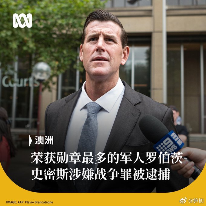 澳洲获得勋章最多的军人、47岁的维多利亚十字勋章获得者本·罗伯茨-史密斯涉嫌战争罪被捕,面临五项“战争罪—谋杀”指控,涉及2009至2012年在阿富汗杀害多名平民。最高刑罚为终身监禁。看多了你就会发现:它们所谓的战争英雄其实就是侵略别人国家的战犯。它们所谓的西部牛仔其实就是抢夺印第安人的土匪!它们所谓的探险夺宝其实就是抢夺别人国家的文物!就如同它们所谓的“发现新大陆”的说法仿佛当地没有原住民一样,而他们给当地人带去的从来不是文明和繁荣,恰恰是当地原住民的文化与种族灭绝!它们打着反恐旗号屠杀的人类远比世界所有恐怖分子屠杀的人类总和还要多得的!它们打着民主自由的旗号对世界和人类造成的祸害远比它们嘴里任何专制独裁政权多得多!