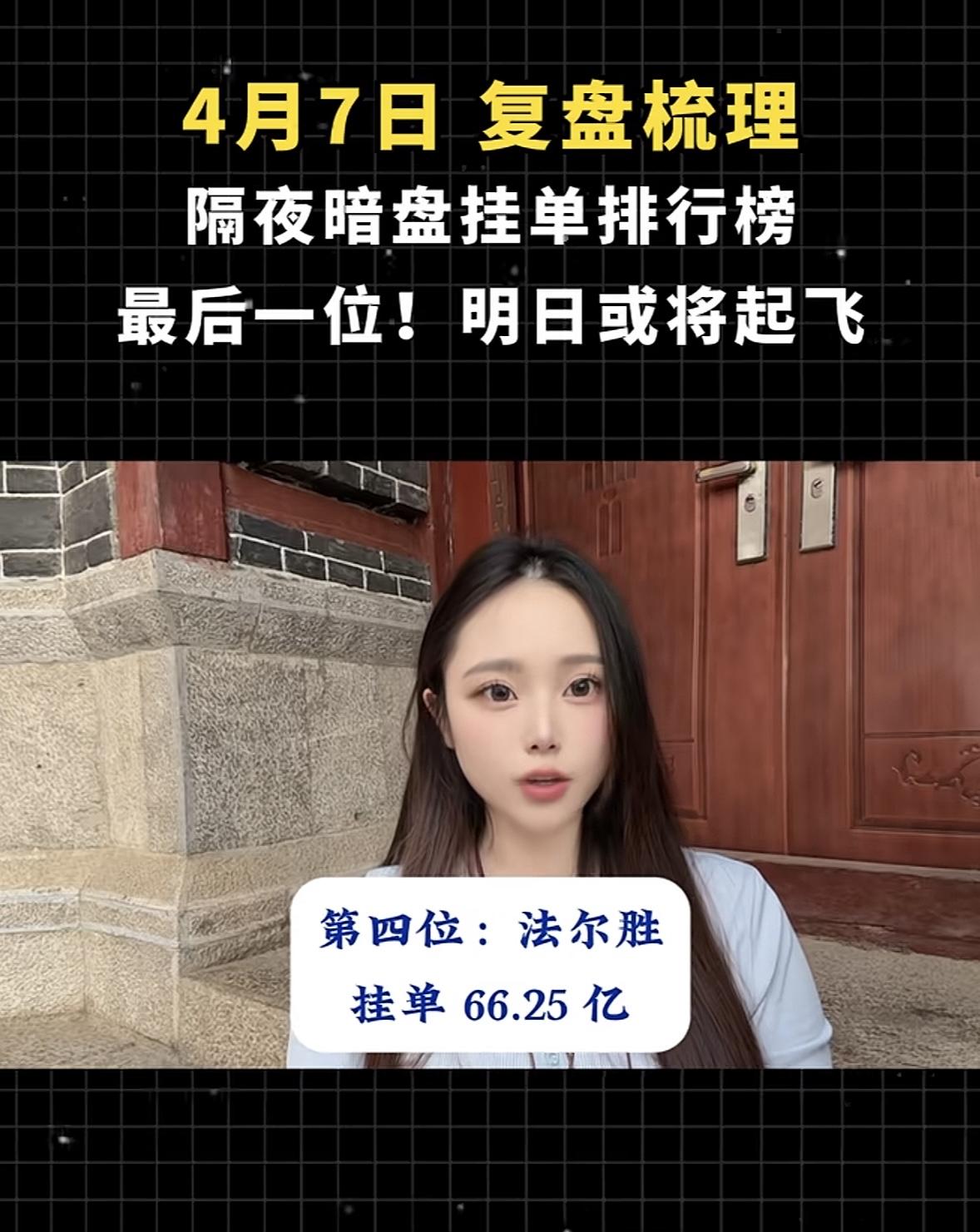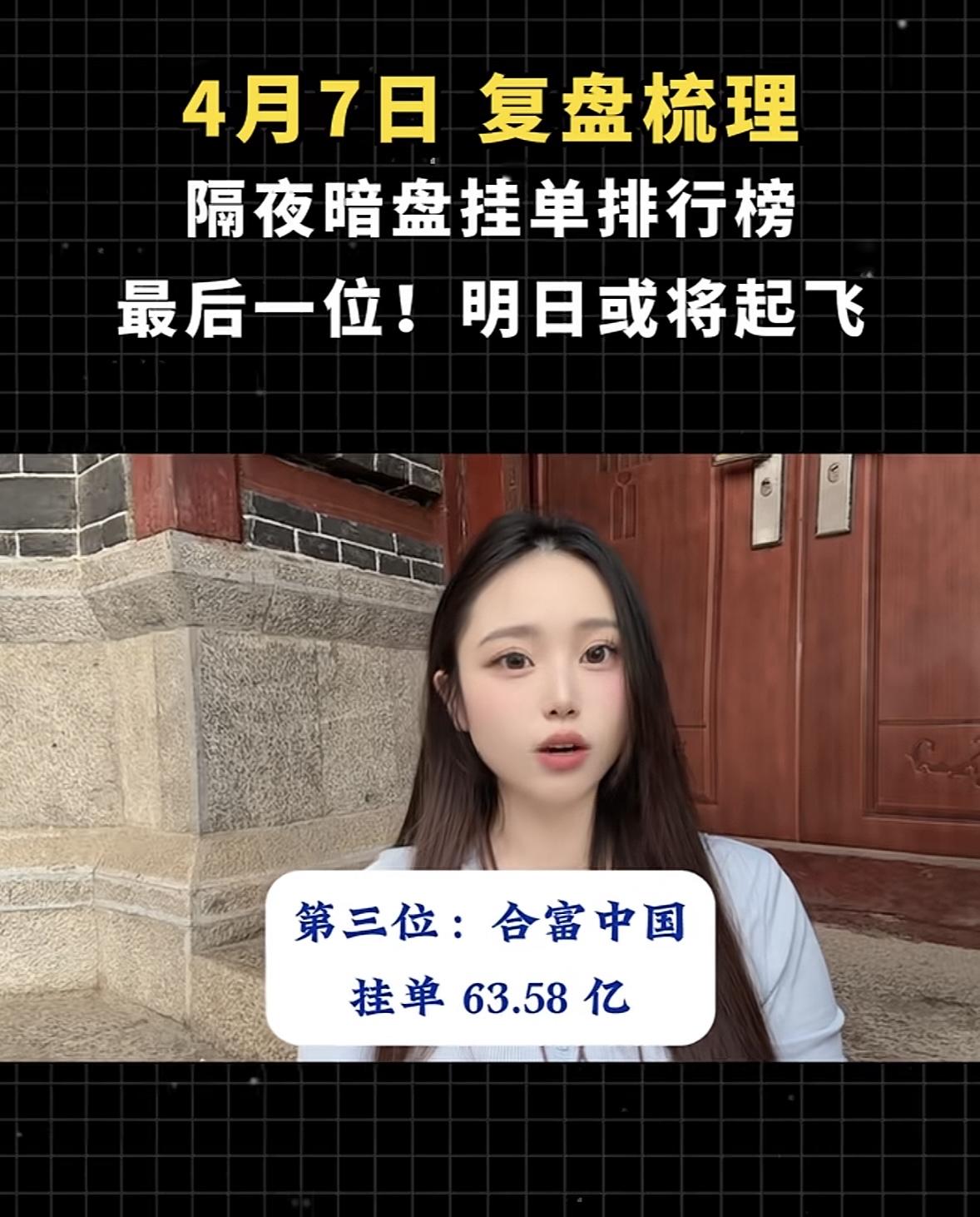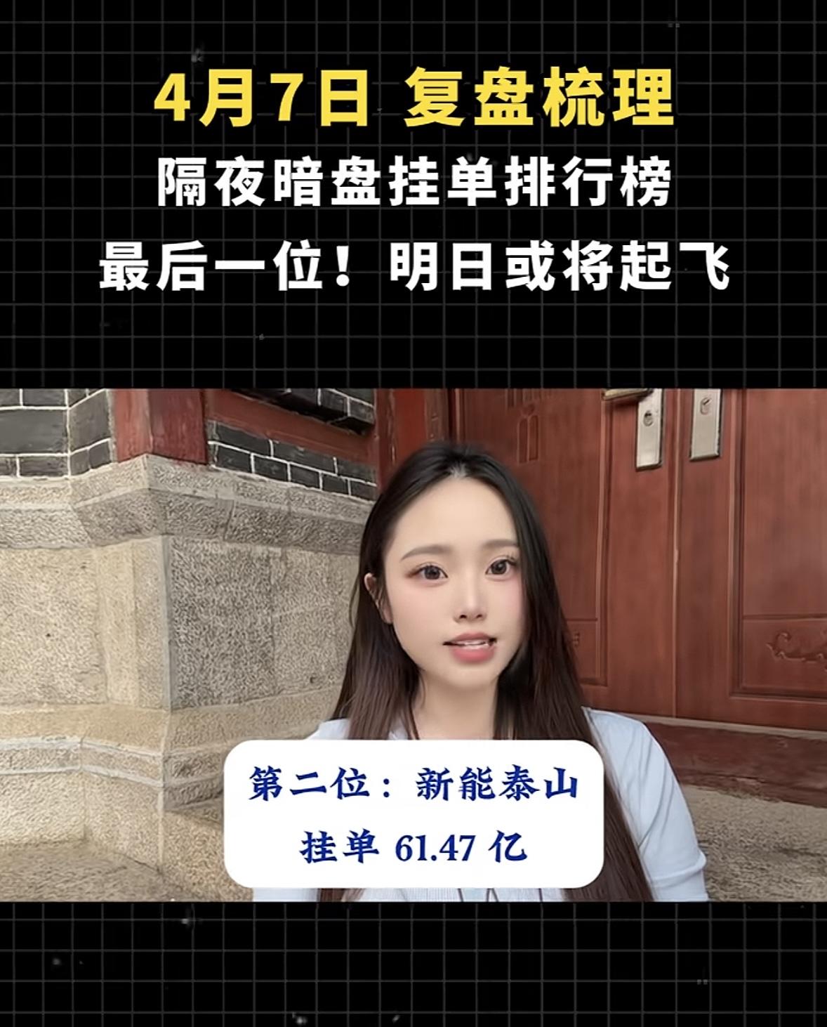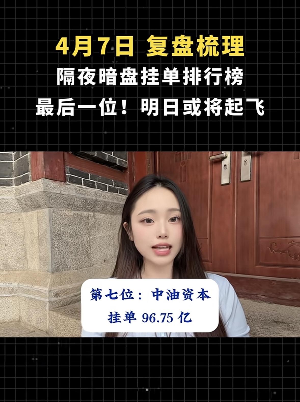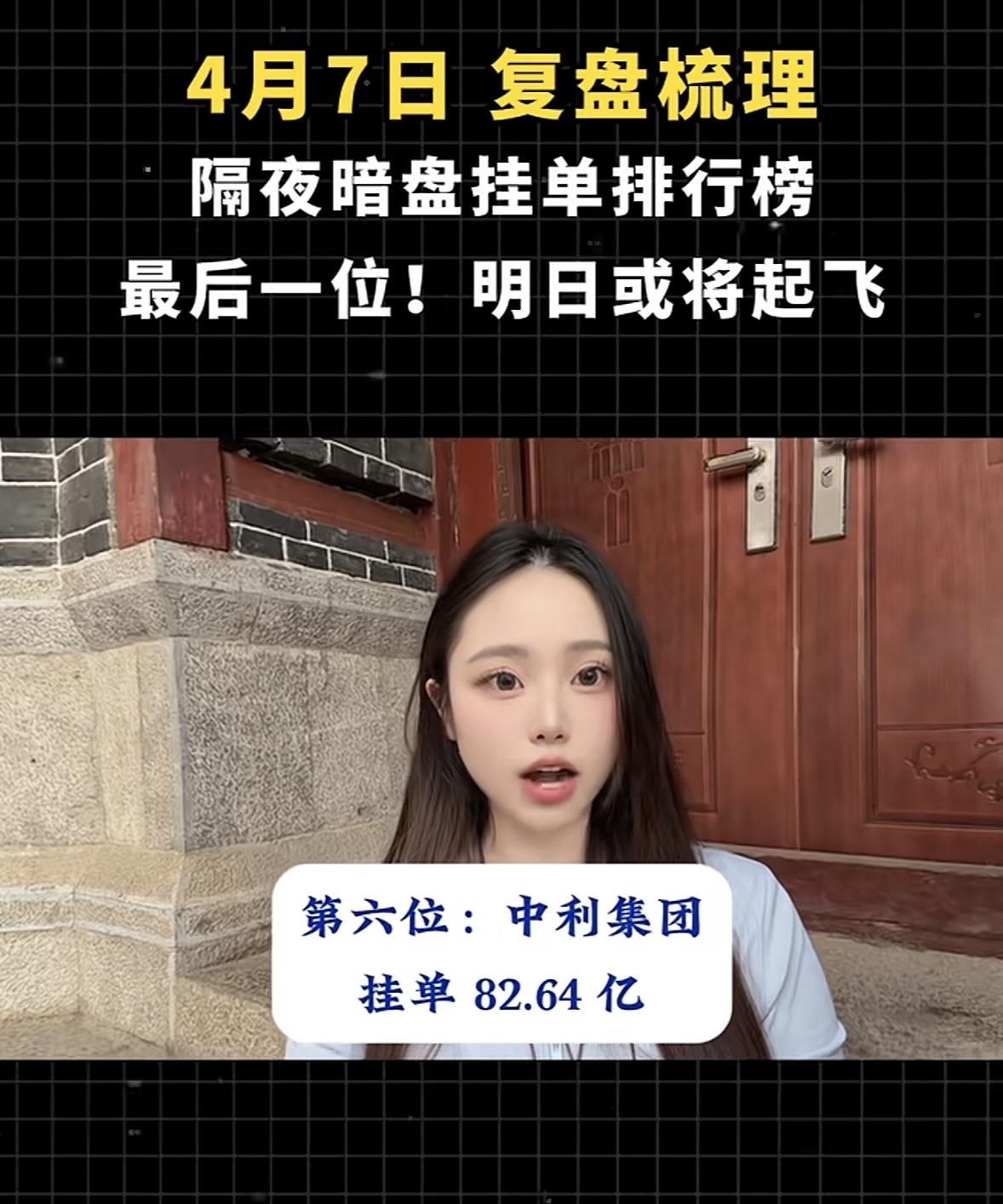 4月8日周三暗盘隔夜挂单排行榜出炉 中利集团这波有点猛啊!截至4月3日收盘,前收盘价5.03元,近5个交易日累计涨幅超35%,股价从3.72元涨到5.03元,直接进入前期密集套牢区。现在挂单82.64亿,还在隔夜暗盘榜排第六名,明天起飞的可能性很大。 从基本面看,厦门建发入主加上百亿债务核销,2025年成功“摘帽”,2026年预计扭亏为盈,净利润0.8 - 1.5亿元。光伏业务在手订单45亿元,双主业协同爆发。不过,股票有风险,大家还是得谨慎操作。