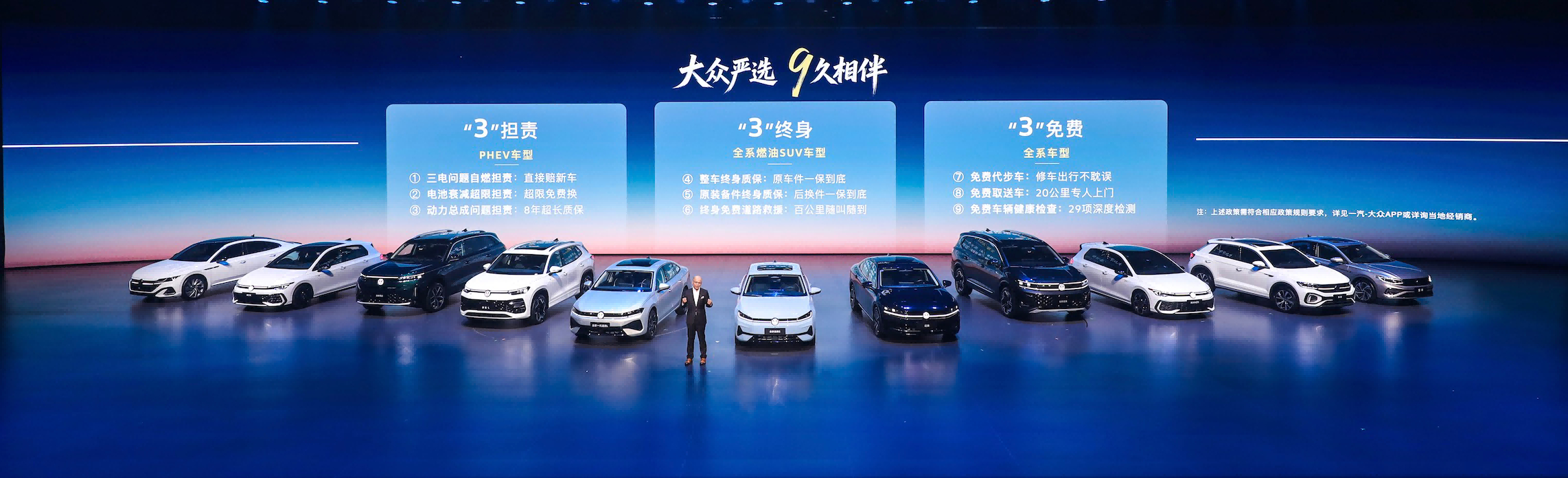 服务方面,一汽-大众推出“三担责、三终身、三免费”九大权益,PHEV车型享三电及动力总成全权保障,燃油SUV获整车终身质保,全系解锁维修代步、上门取送等免费服务。4月1日-30日,下订燃油车还可享1元换油卡礼遇。