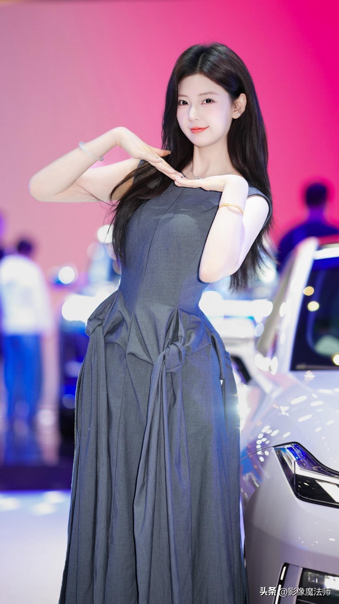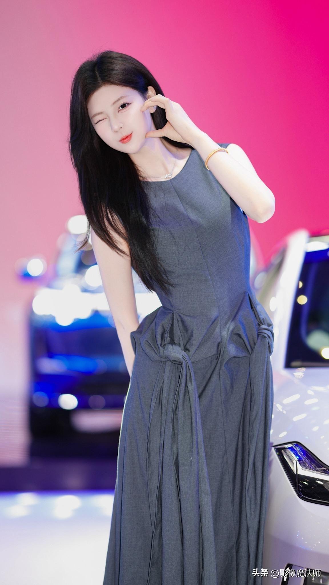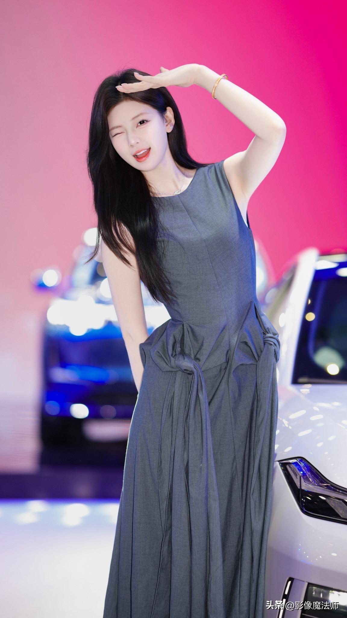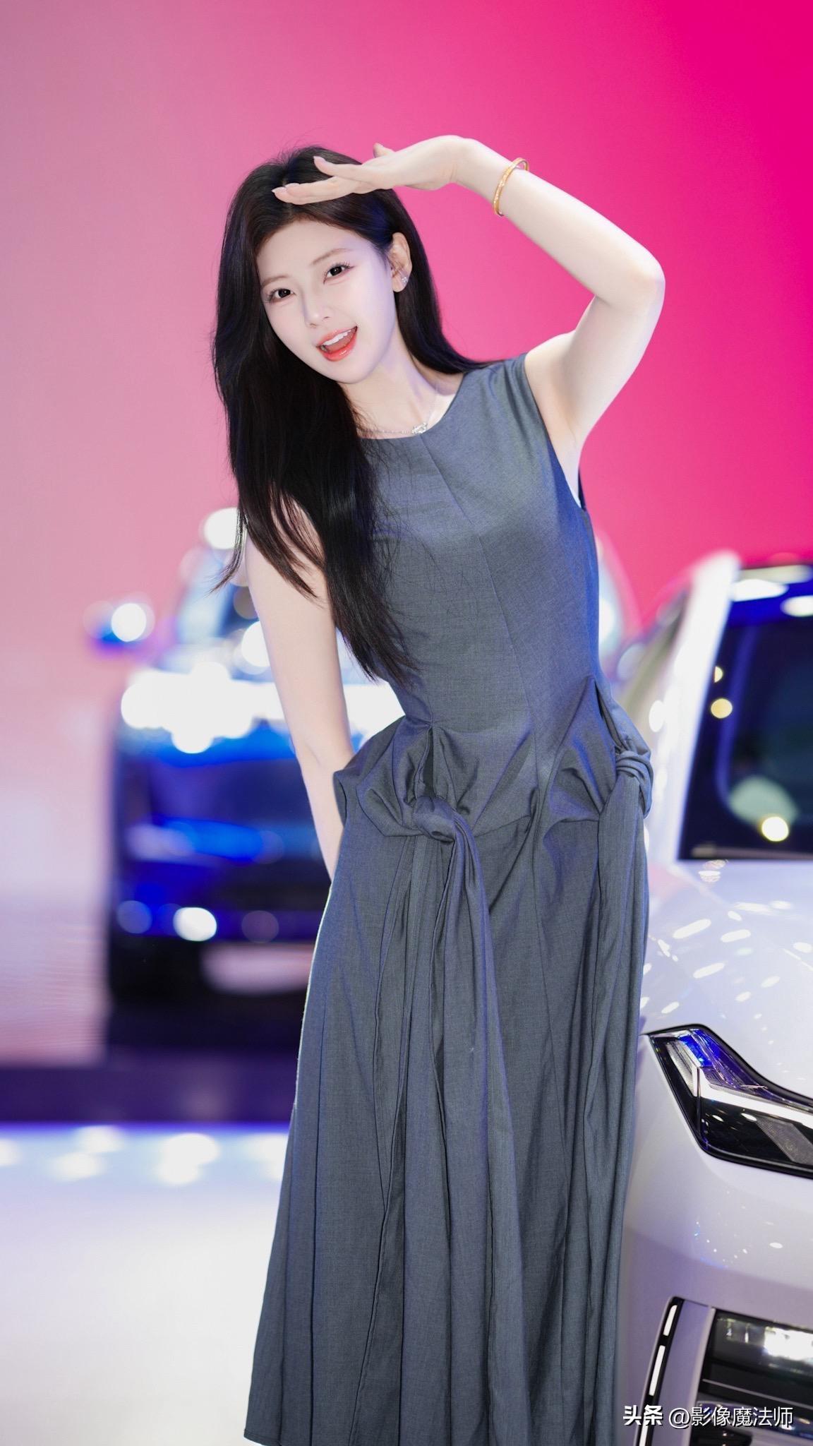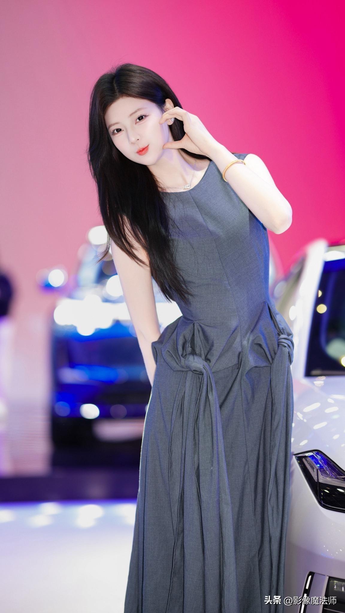 车展女神春晓,灰色长裙又美又飒。春晓车展