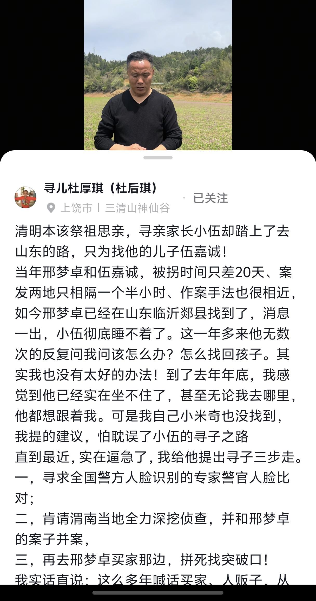奇怪?邢梦卓不是早就找到了吗?为什么杜爸说邢梦卓找到了,伍嘉诚爸爸睡不着了呢? 杜爸说不知道去陪钟斌还是去陪伍嘉成爸爸,伍嘉成爸爸听说邢梦卓在山东临沂找到以后坐不住了,去山东了。 我对邢梦卓这个名字有印象,记得早就找到了,找到的时候好像在上大学呢!低调认亲,网上查到的信息2024年就找到了啊?为啥现在才开始去找他的买家呢?