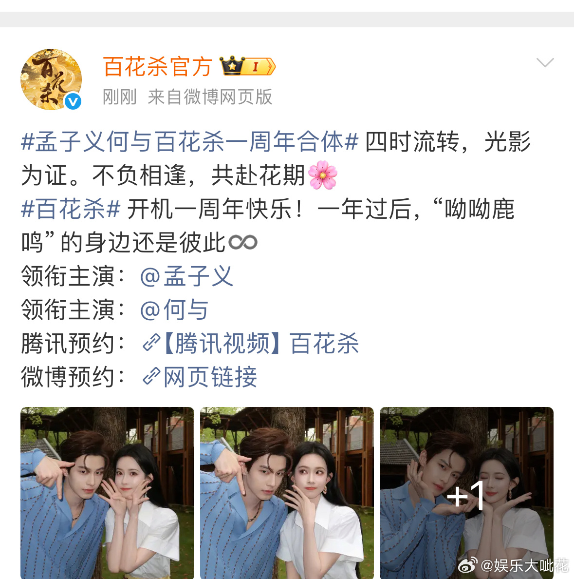 孟子义何与百花杀一周年售后孟子义何与百花杀周年合照妈耶 俺们呦呦鹿鸣合照来了,一周年合体售后~ 四时流转,光影为证。不负相逢,共赴花期🌸一年过后,身边还是彼此