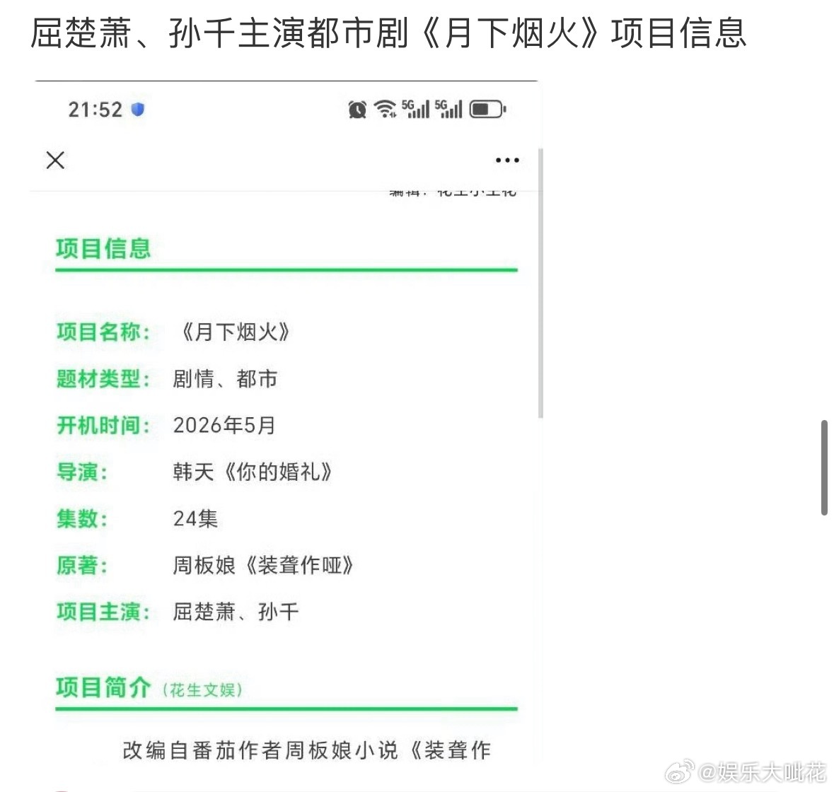 孙千屈楚萧月下烟火孙千屈楚萧领衔主演装聋作哑大IP装聋作哑影视化了,改名《月下烟