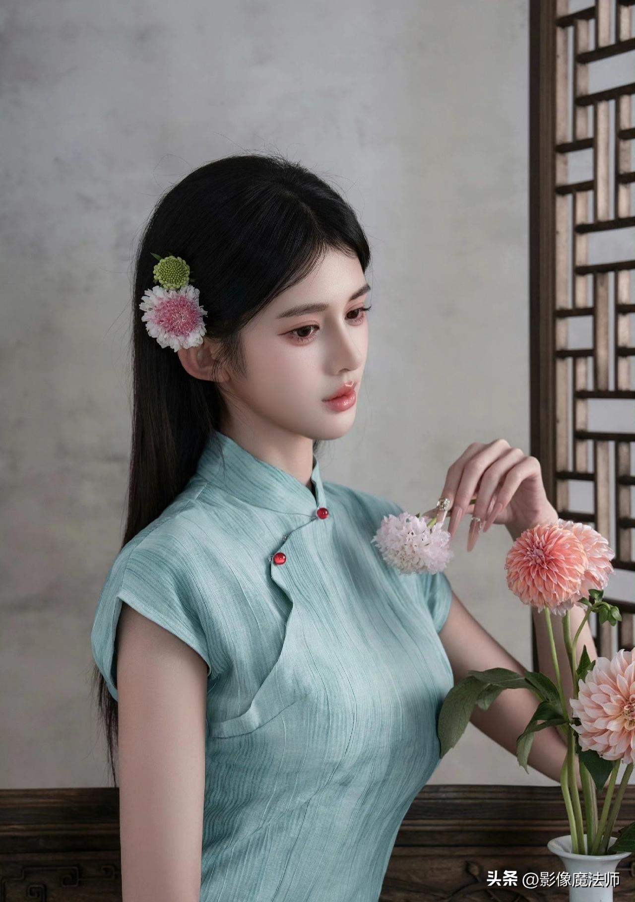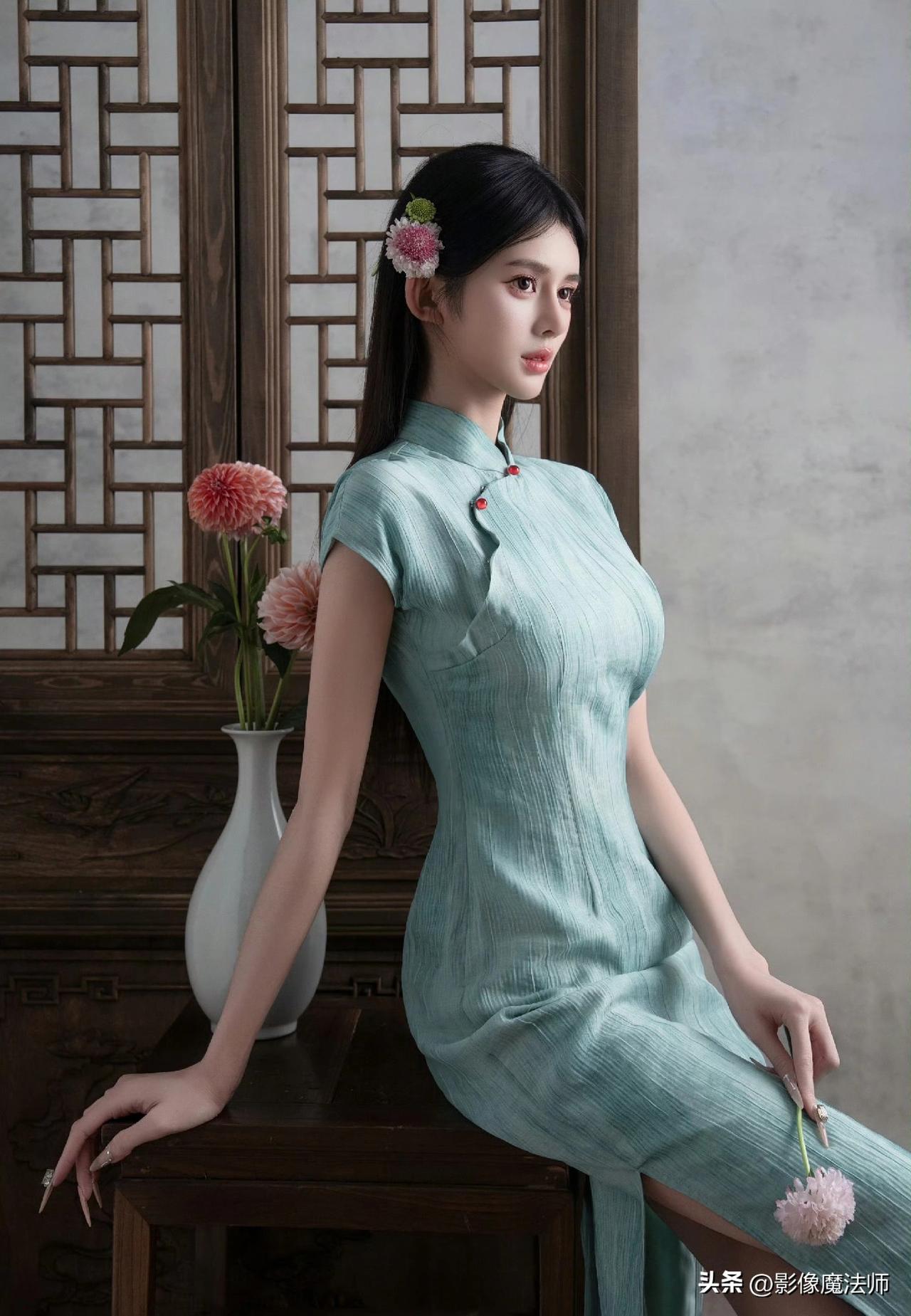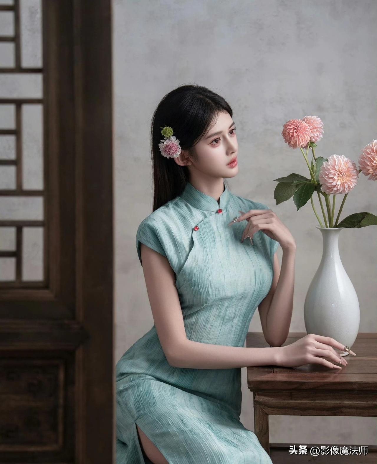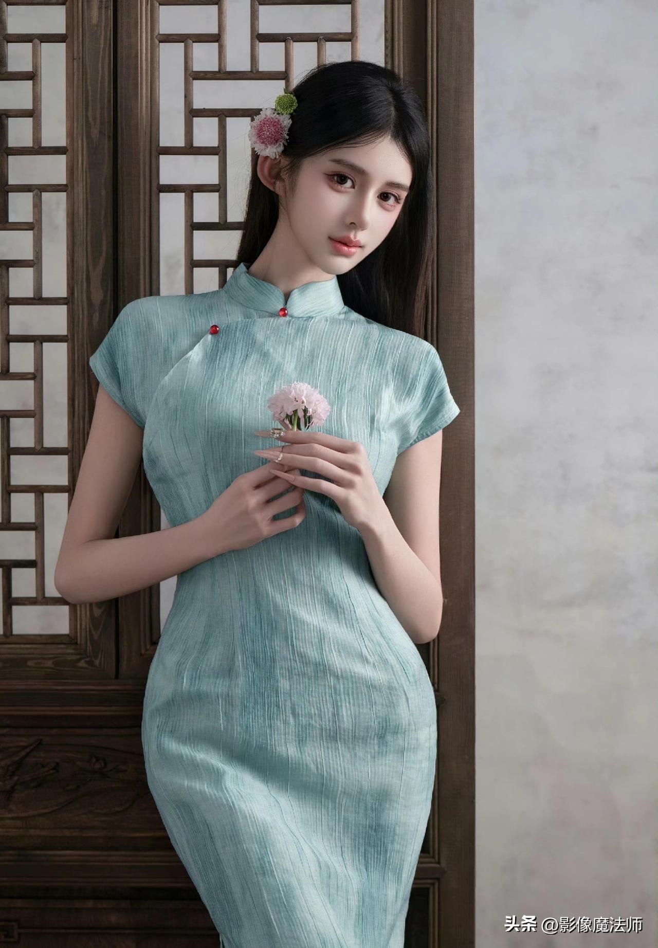 清冷系美人穿搭,青绿旗袍太美了!旗袍风气质穿搭