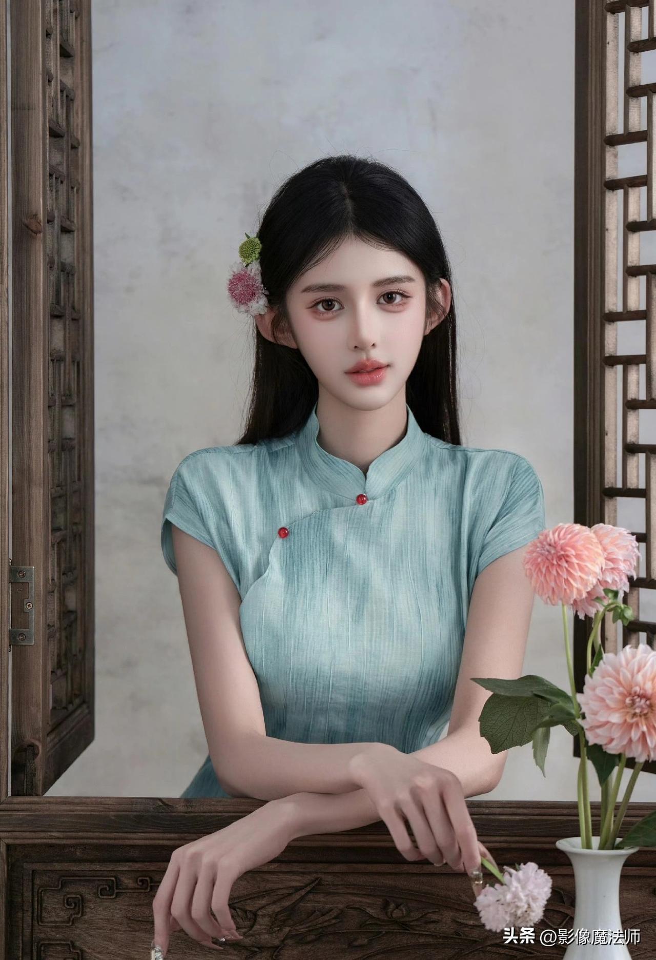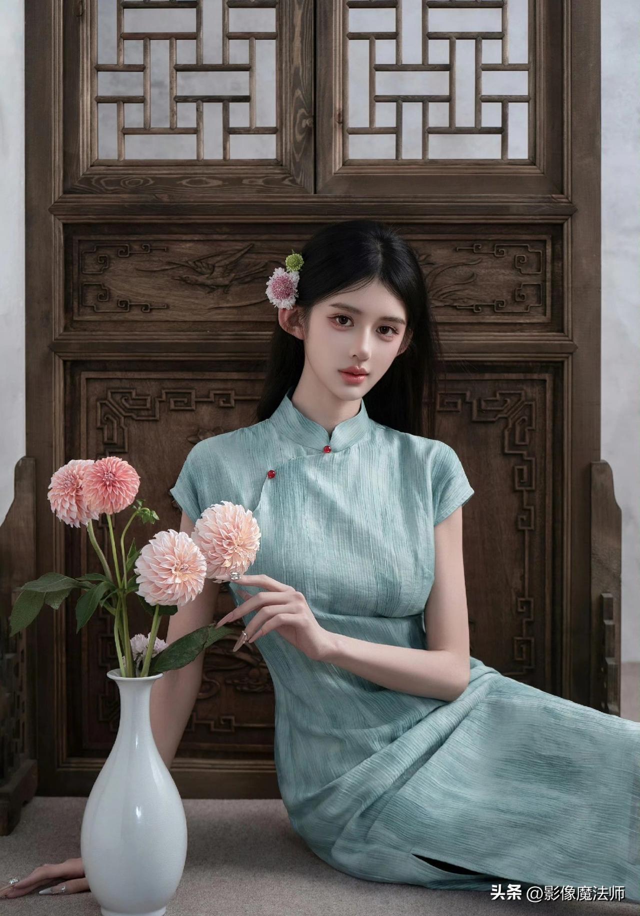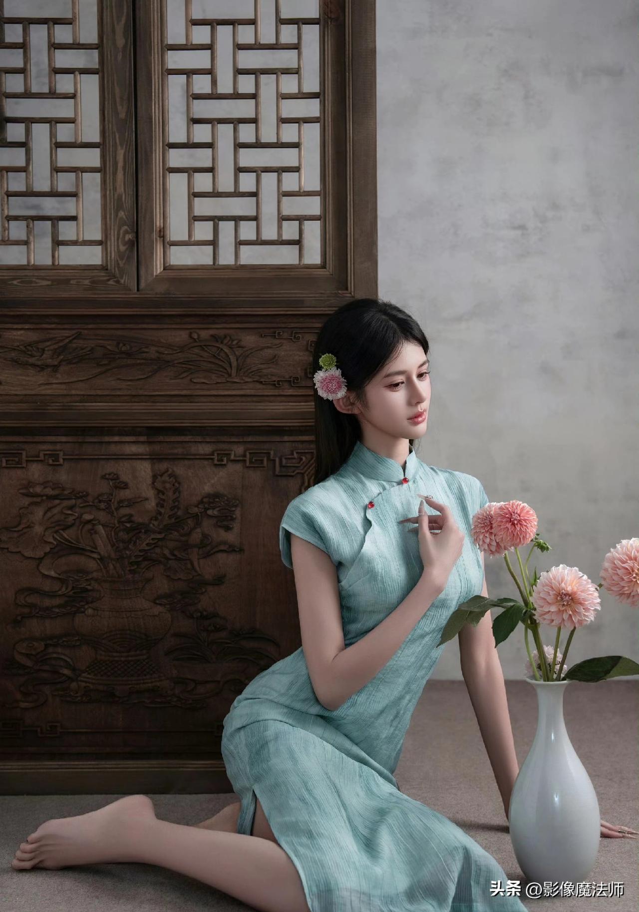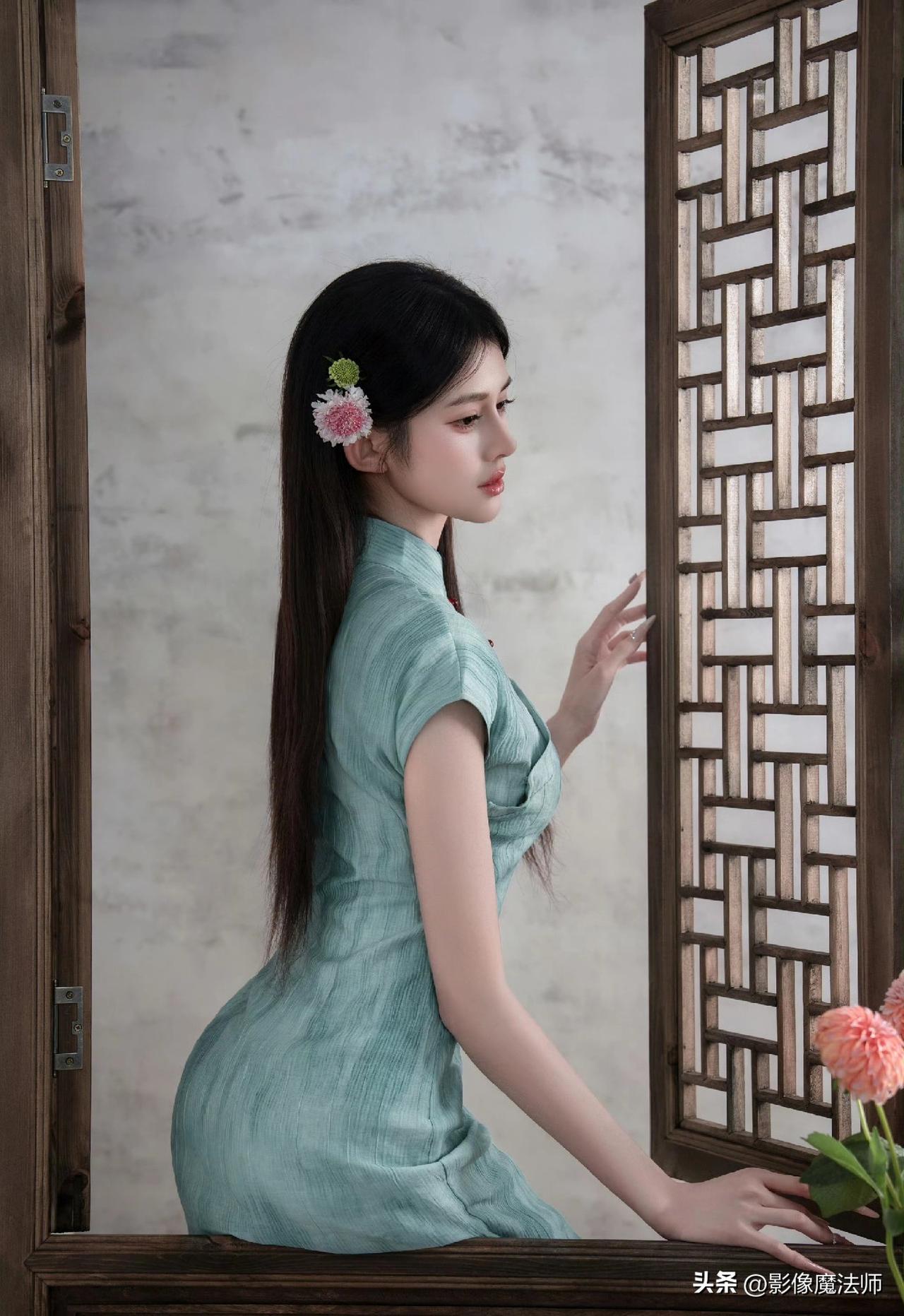清冷系美人穿搭,青绿旗袍太美了!旗袍风气质穿搭