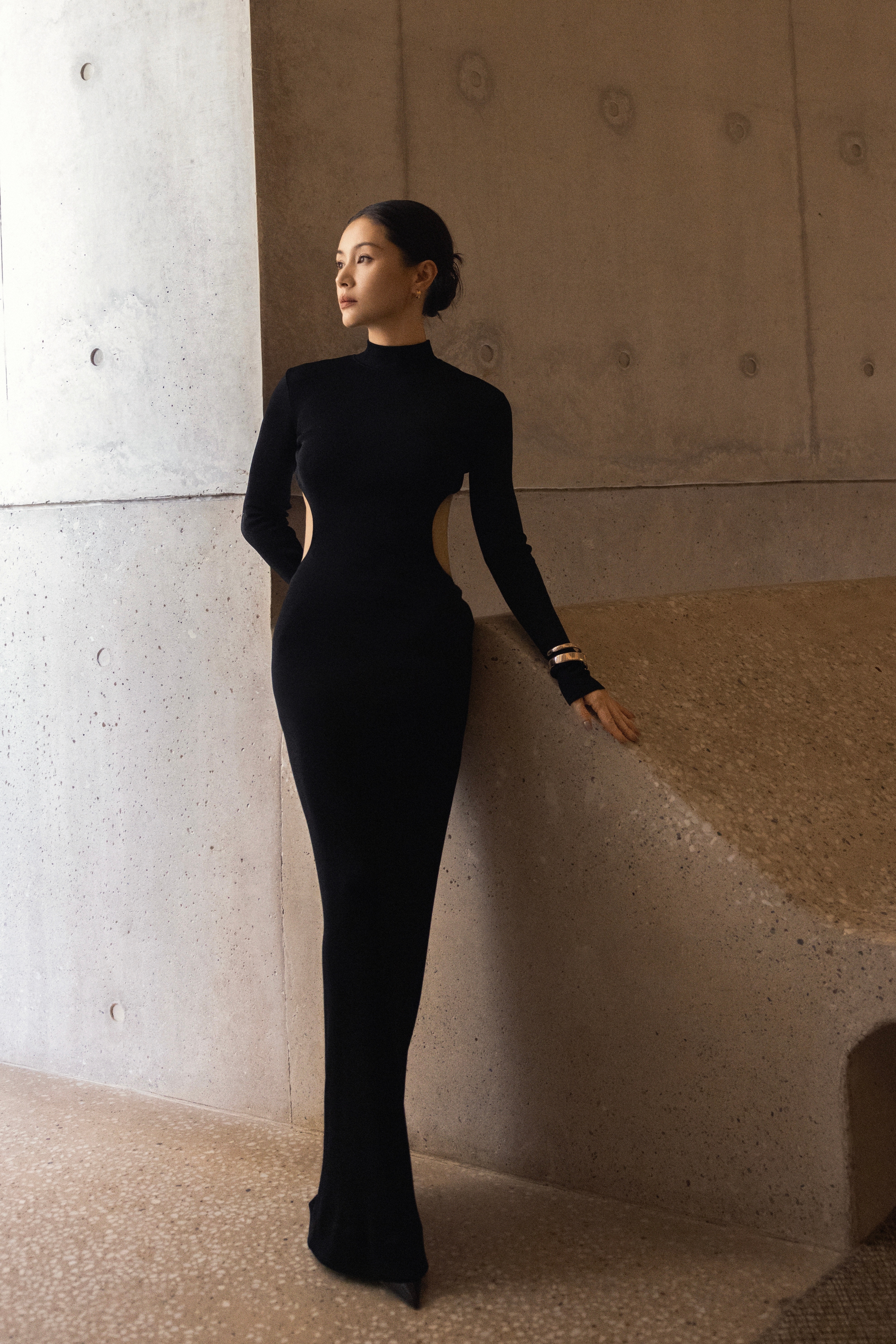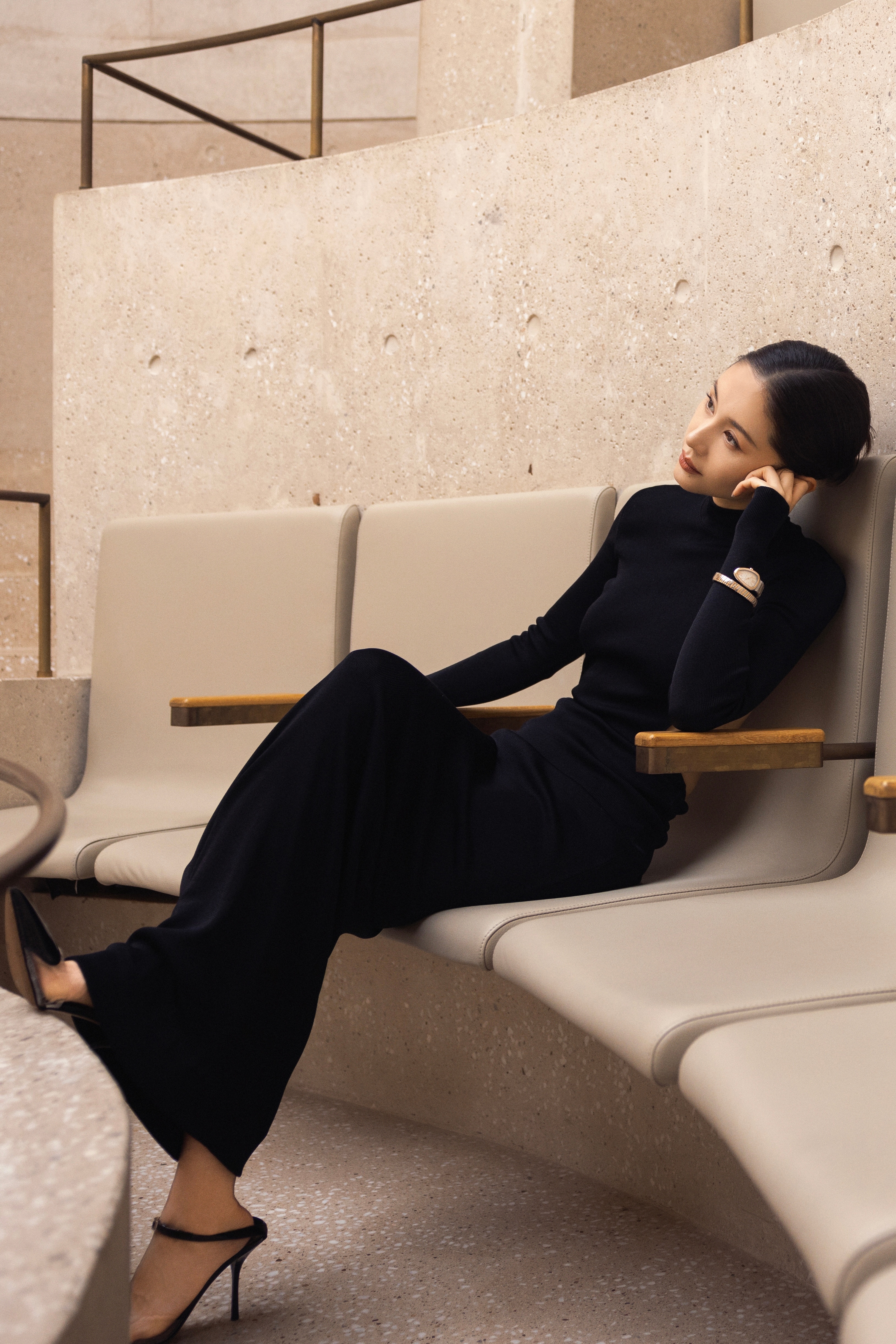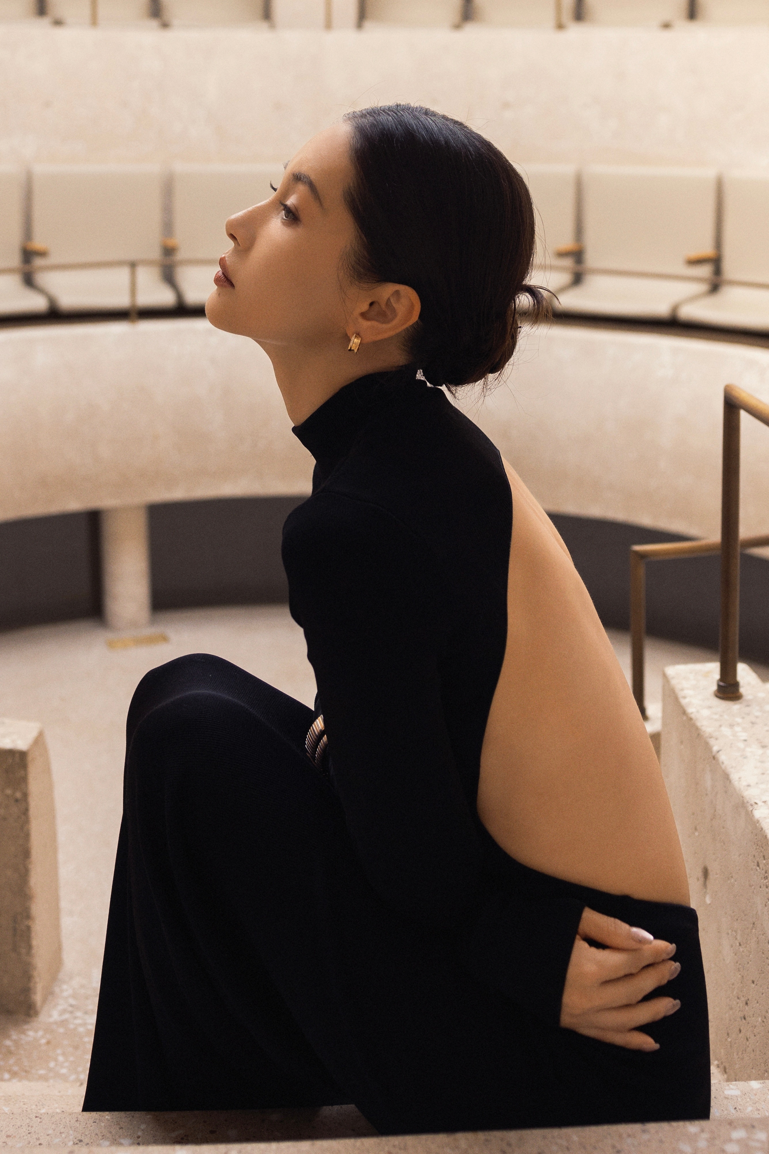 这条露背裙穿在王子文身上,真的是把「娇小身材的大气场」发挥到了极致。裙子的剪裁极简却锋利,流畅的线条沿着她的肩背一路延伸,每一个脊柱的轮廓都在说着「优雅」和「力量」。她不是那种用身高定义气场的女明星,她是用姿态——那个转身时露出整片蝴蝶骨的动作,性感得坦坦荡荡,丝毫不拖泥带水。这种美,带着一种轻盈的压迫感,就像在看一只停在指尖的稀有蝴蝶,你知道它精致、脆弱,却也笃定它随时能飞出最惊艳的弧线。不讨好,不张扬,却让人移不开眼。真的是小个子穿搭的天花板了。