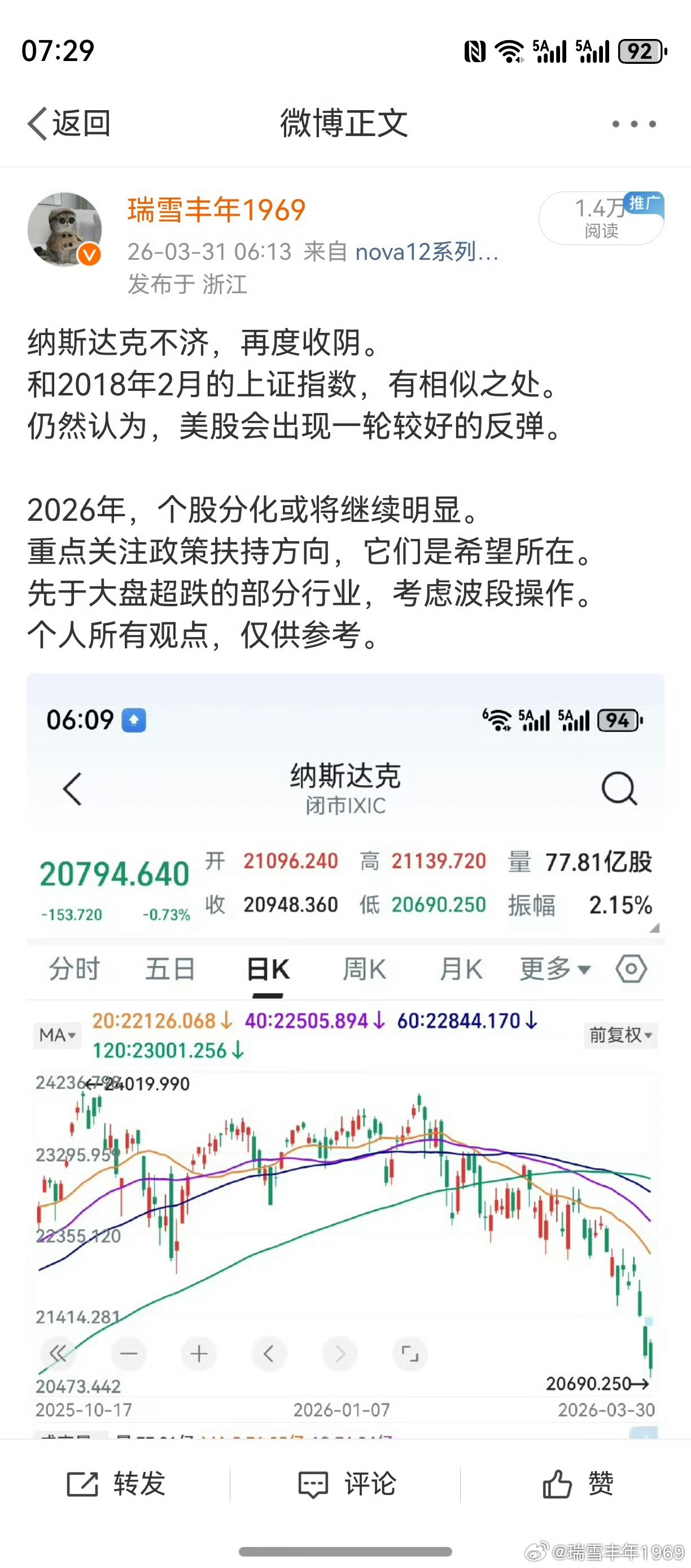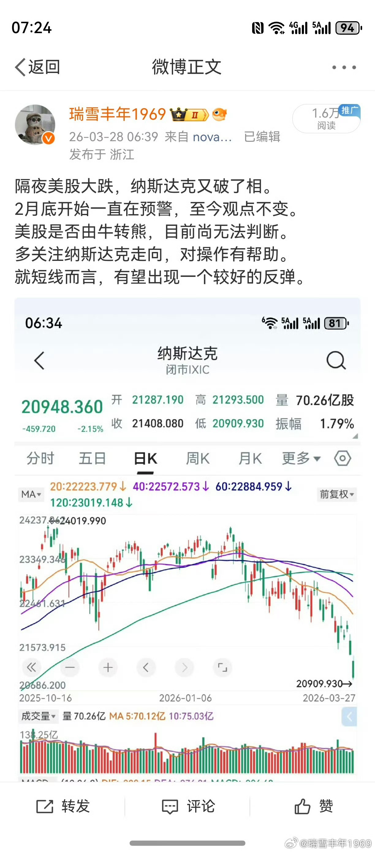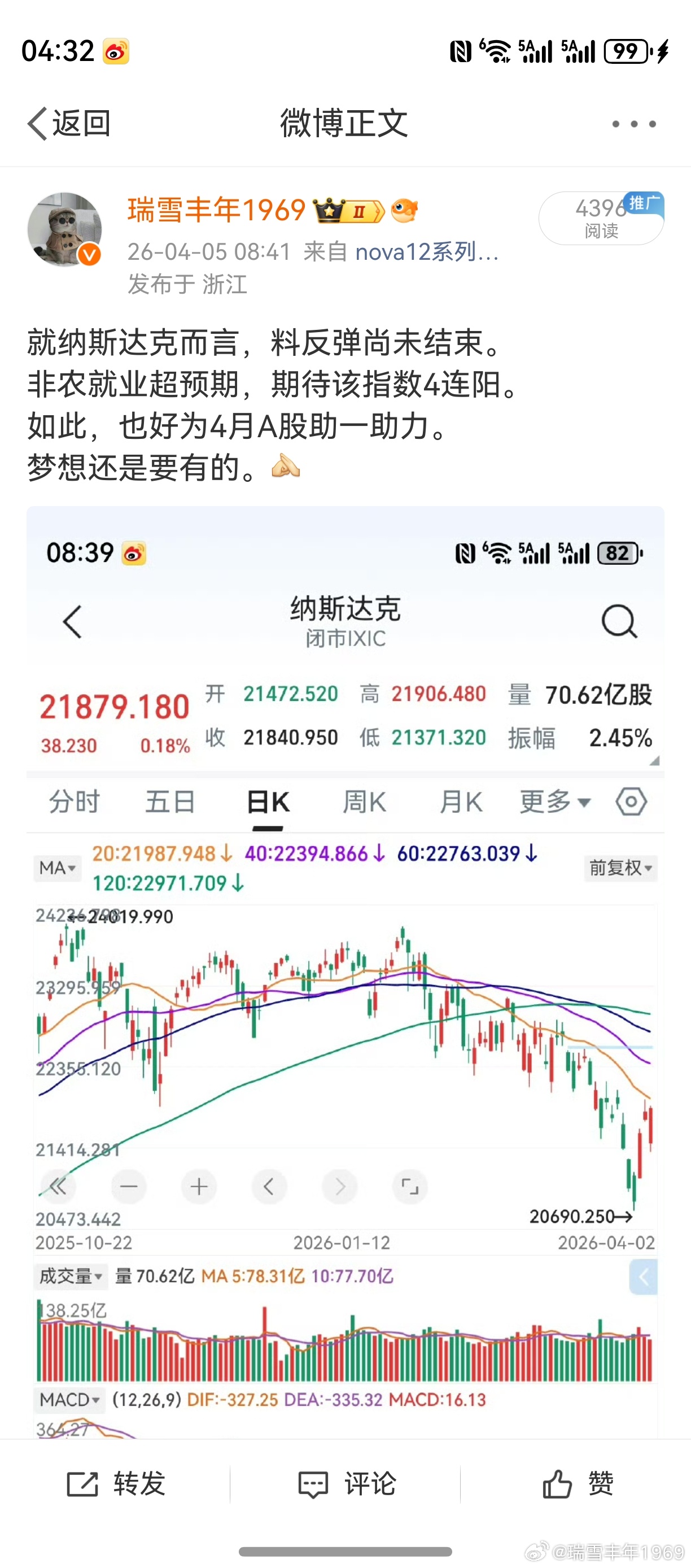 说跌就跌,说涨就涨。谁写的微博?老鸭看了肃然起敬!能遇到如此高人,老鸭打算去认识一下。只需要照一照镜子,就解决了。理就是这么个理,老鸭最爱讲道理。
