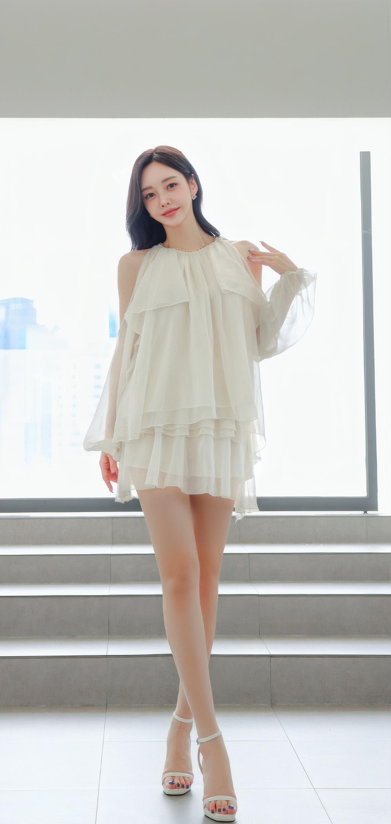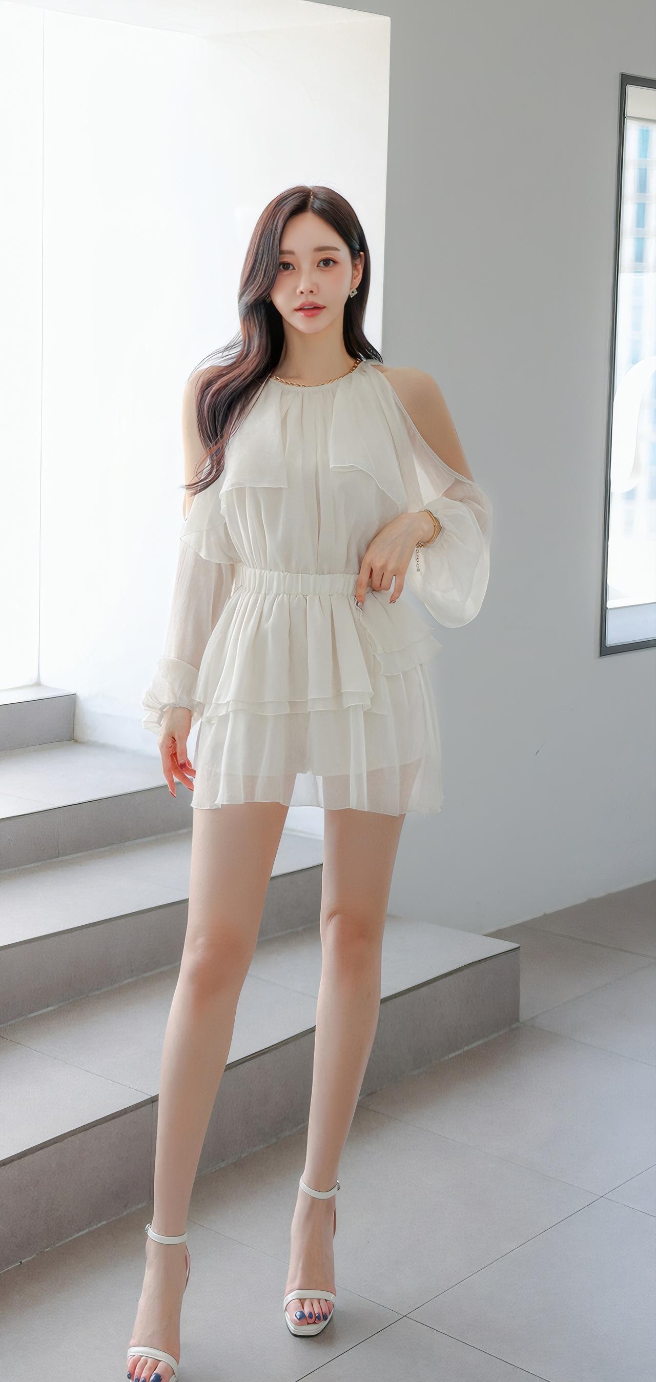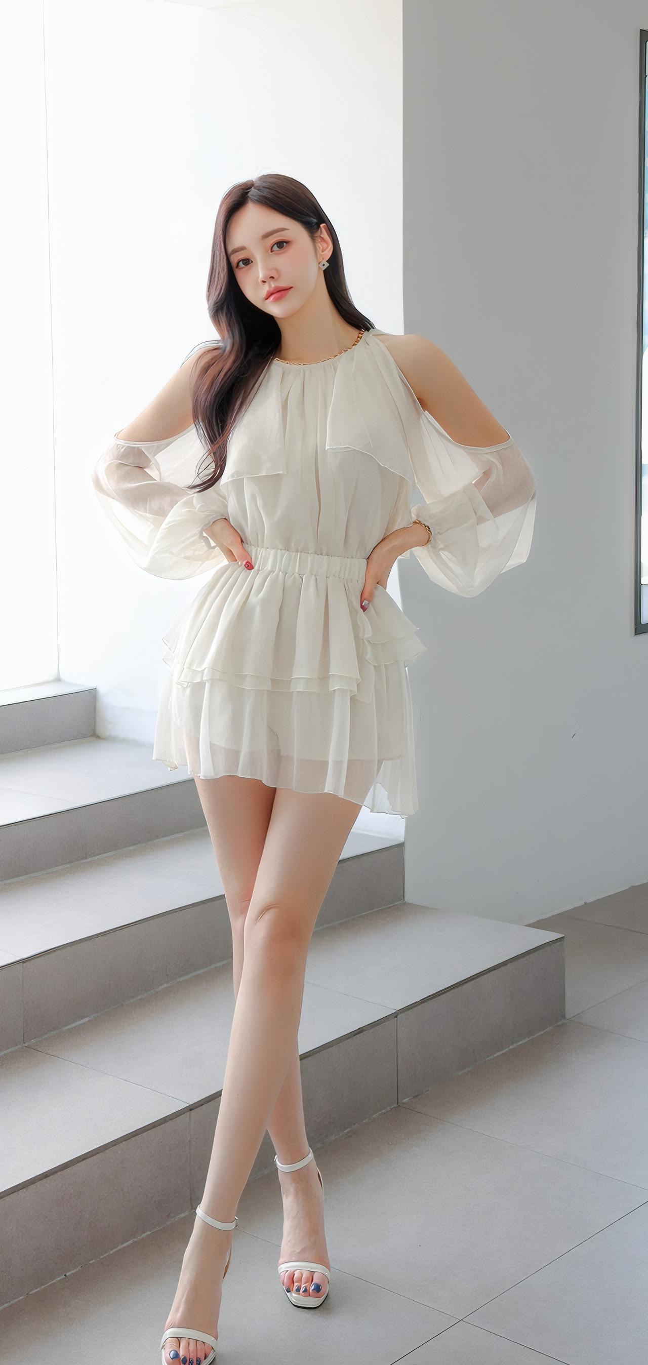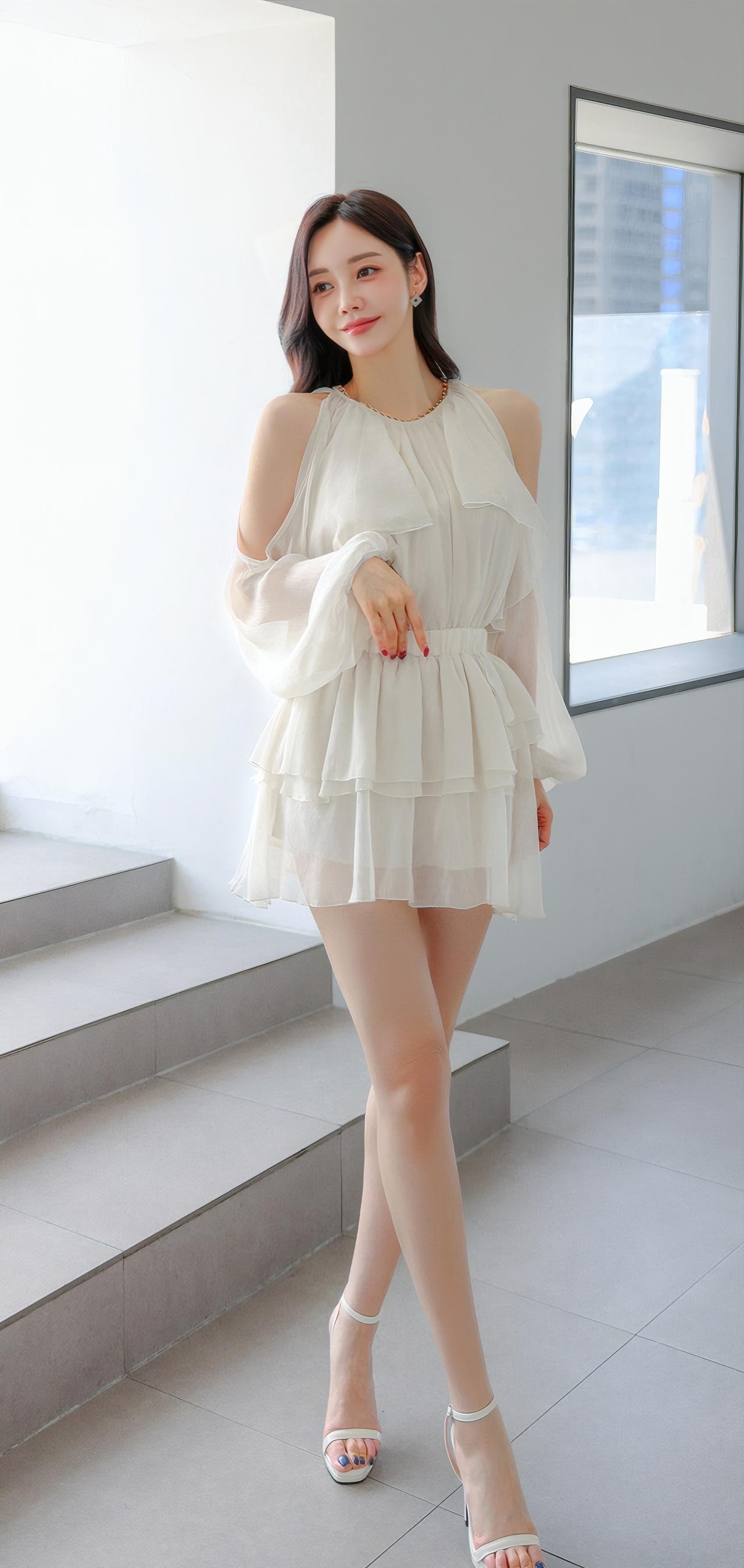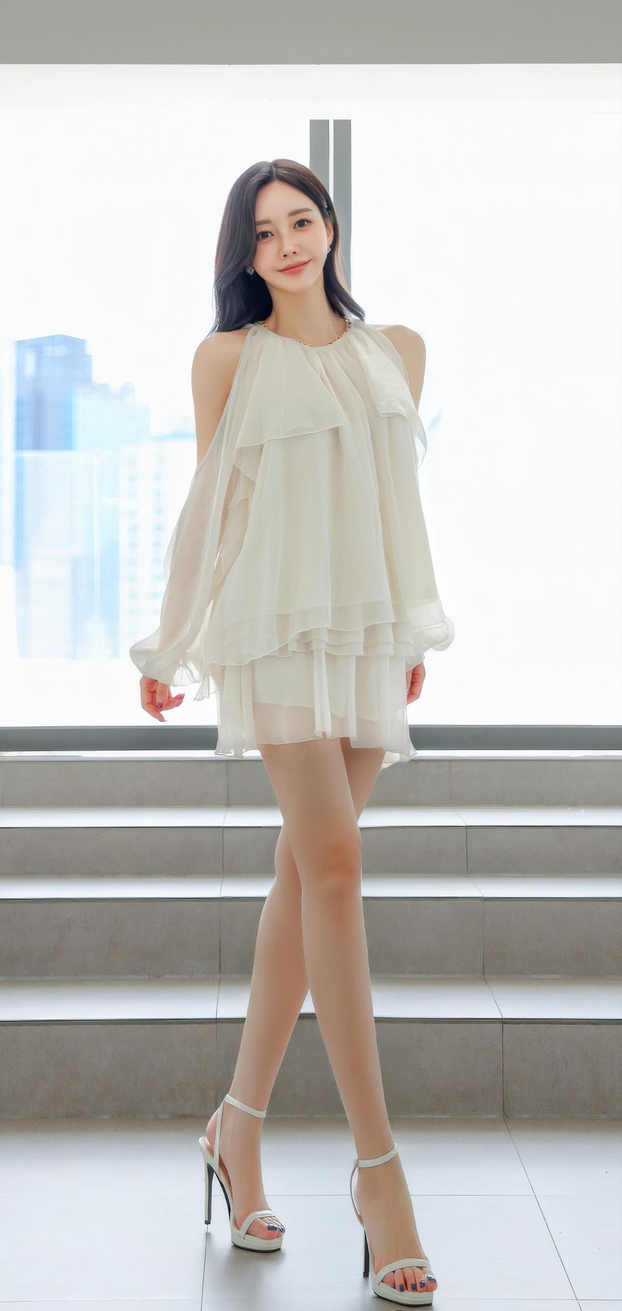 温柔甜美的夏日穿搭,轻盈飘逸的白色连衣裙,搭配高跟鞋,尽显优雅气质。