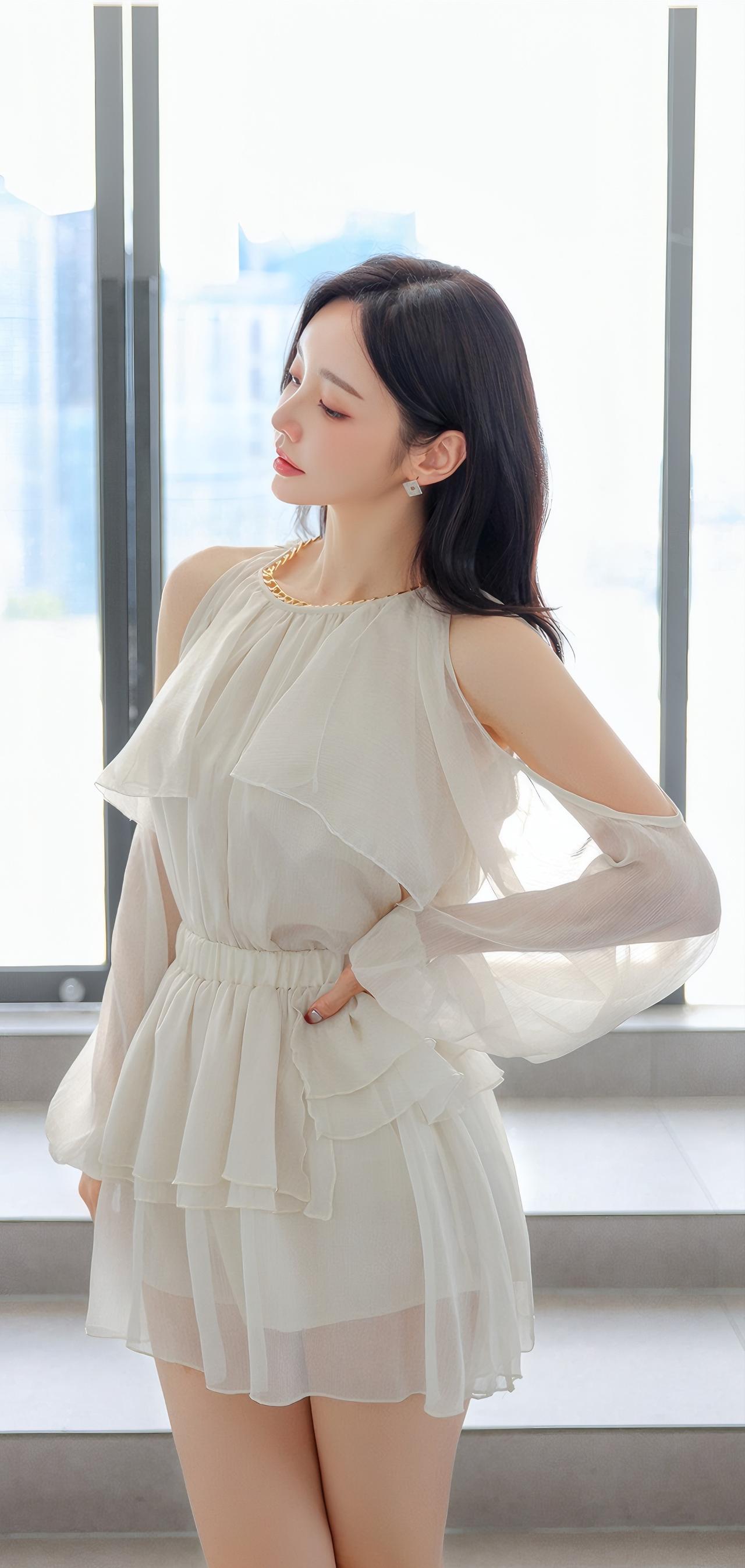 温柔粉裙少女,静坐窗边,享受美好时光。🌸💕