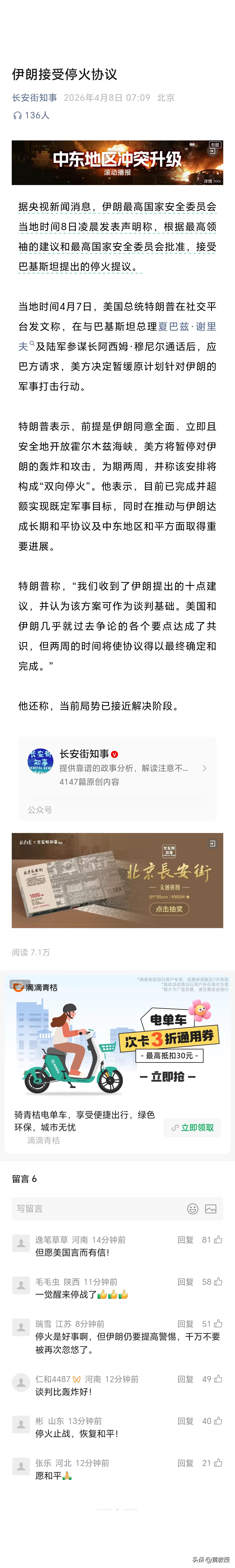 伊朗接受停火提议 您怎么看?