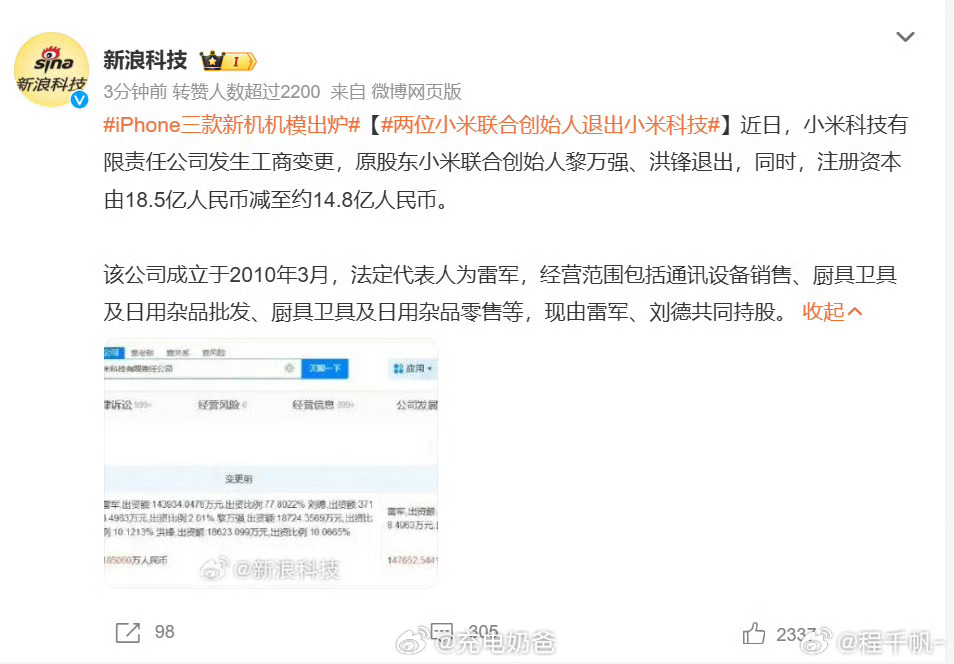 都是公司发展的必经之路,没什么好大惊小怪的两位小米联合创始人退出小米科技