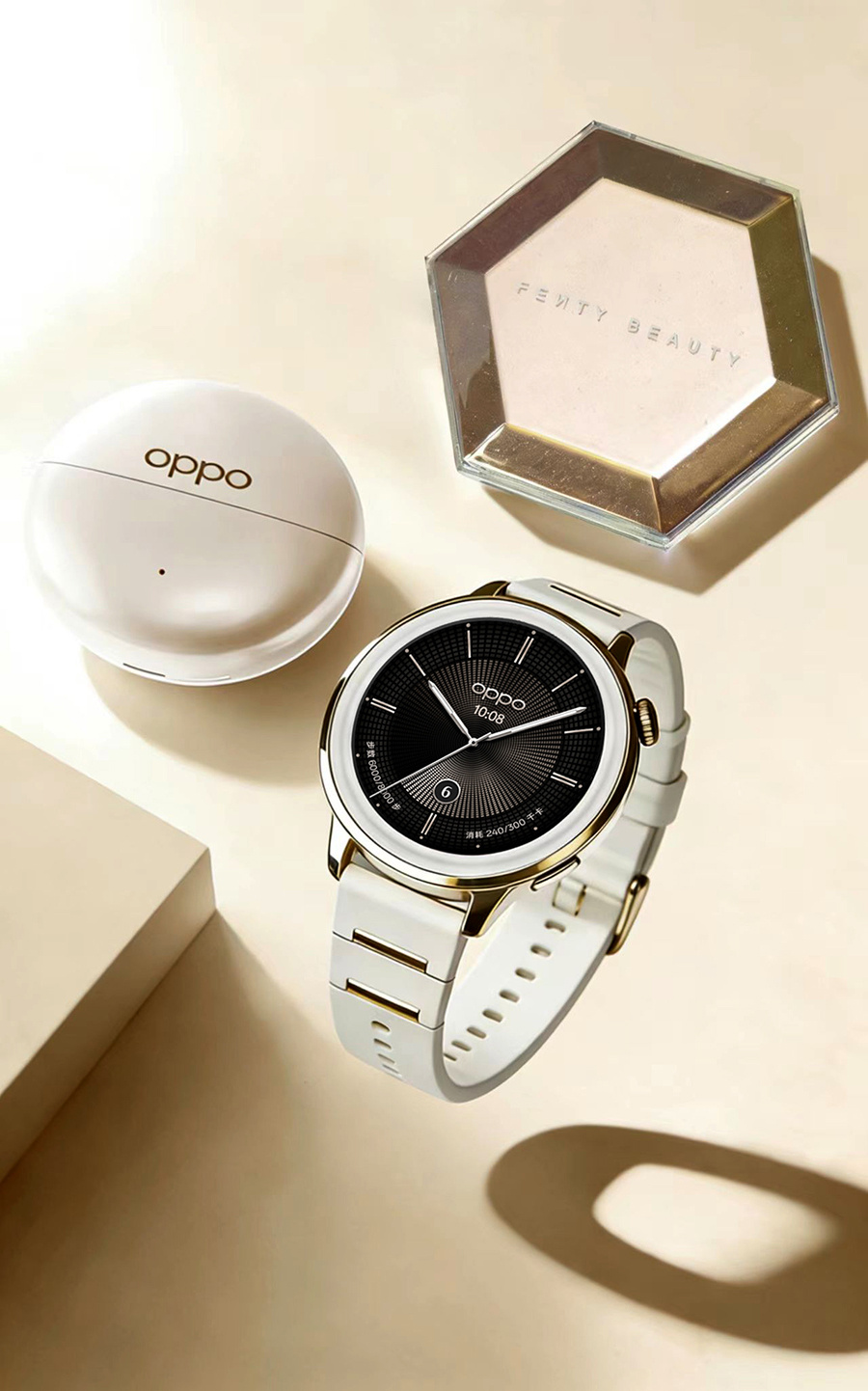 小金表精致又百搭,表圈是钻石切割,真金材质+钻石切面表圈,面面都闪耀!小金环既能当耳夹又能当耳饰,真正的耳边高光时刻!高光粉饼也超级适合夏天,控油持妆一整天,皮肤状态棒棒的!OPPOEncoClip2OPPO耳夹耳机OPPOWatchX3miniOPPO手表