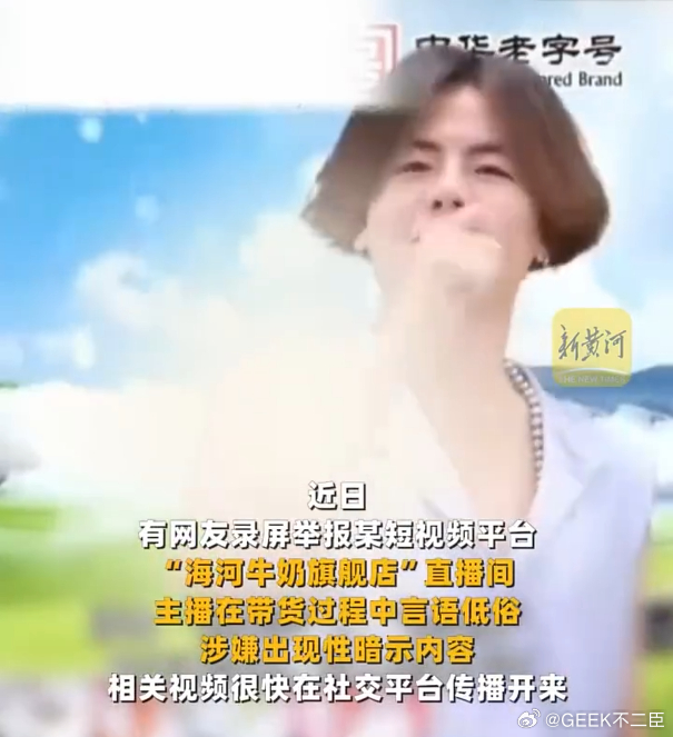 直播涉黄牛奶品牌为中华老字号直播间那个老字号的标,虽然其他信息都遮挡了,但隐隐约约还是能感受到可能是海河!