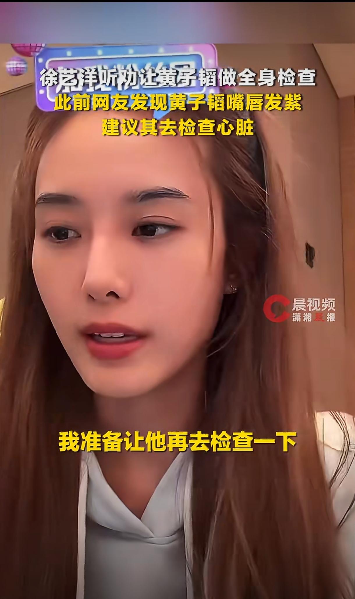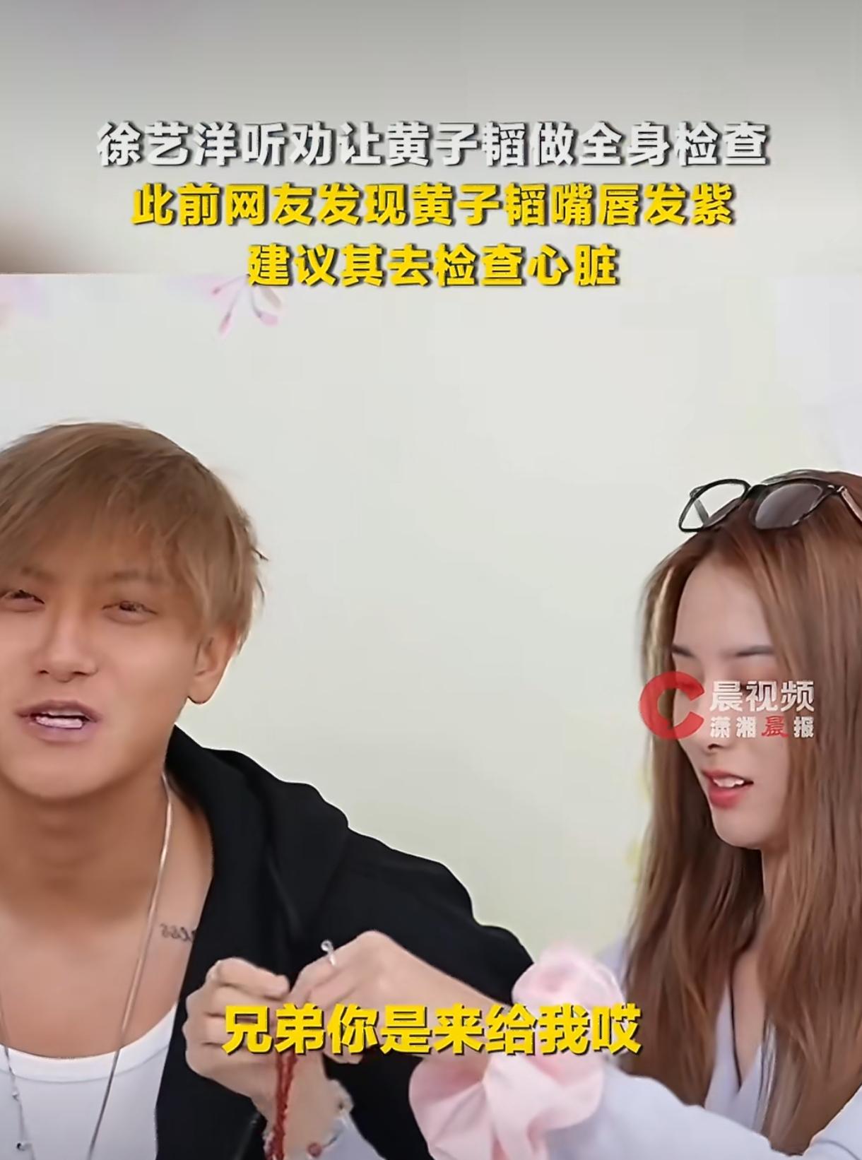 黄子韬紫唇上热搜,徐艺洋直播一句话太圈粉 最近黄子韬直播被网友盯到嘴唇发紫,他还想嘴硬开玩笑糊弄过去,结果徐艺洋当场直接打断,一脸认真说健康不能闹着玩。4月7日她专门在直播里给大家吃定心丸,说黄子韬去年已经做过基础体检,没啥大问题,今年还会盯着他去做全套全身检查,把隐患都排查干净。这波又暖又负责,难怪网友都夸她靠谱又贴心。
