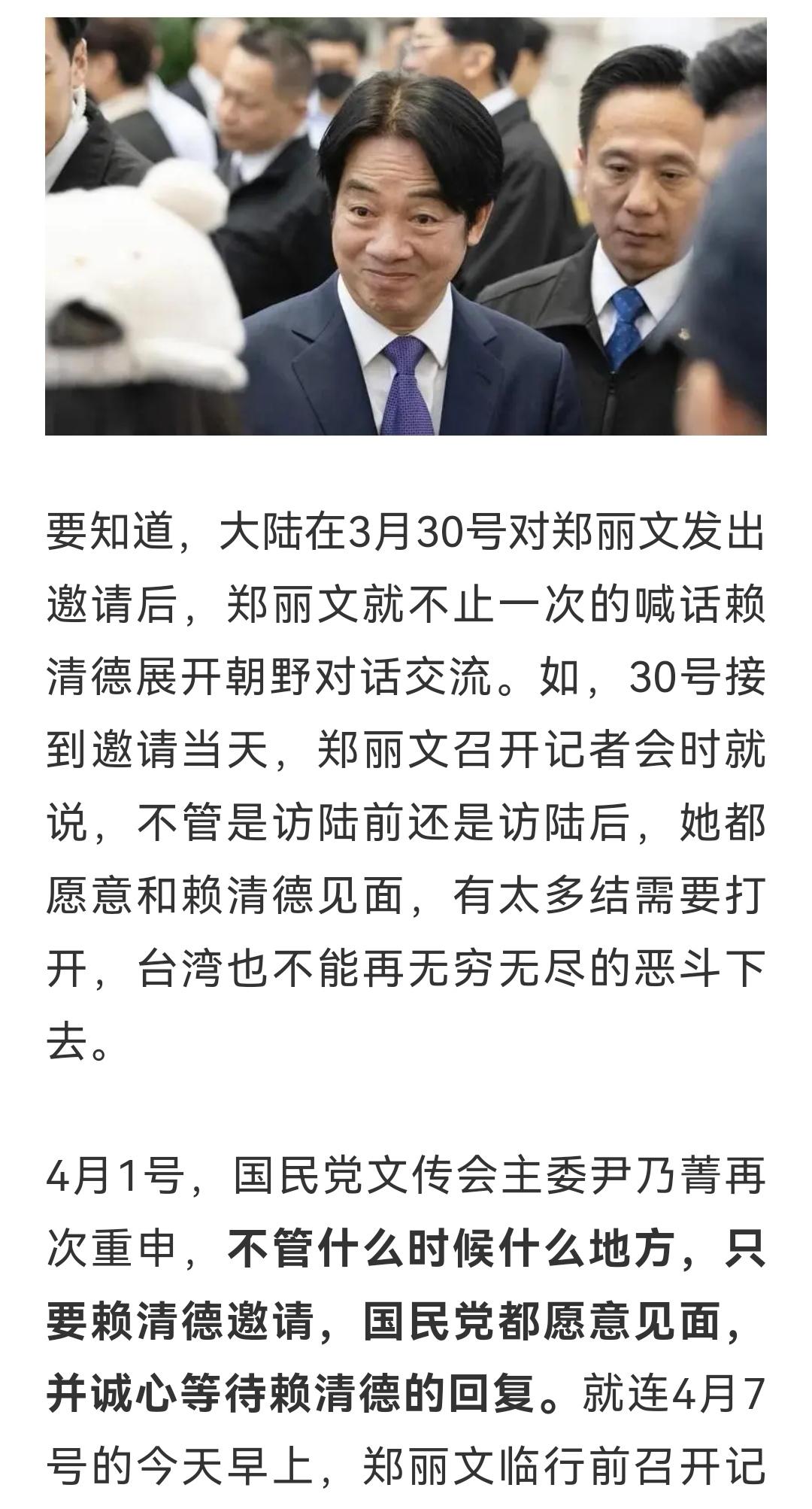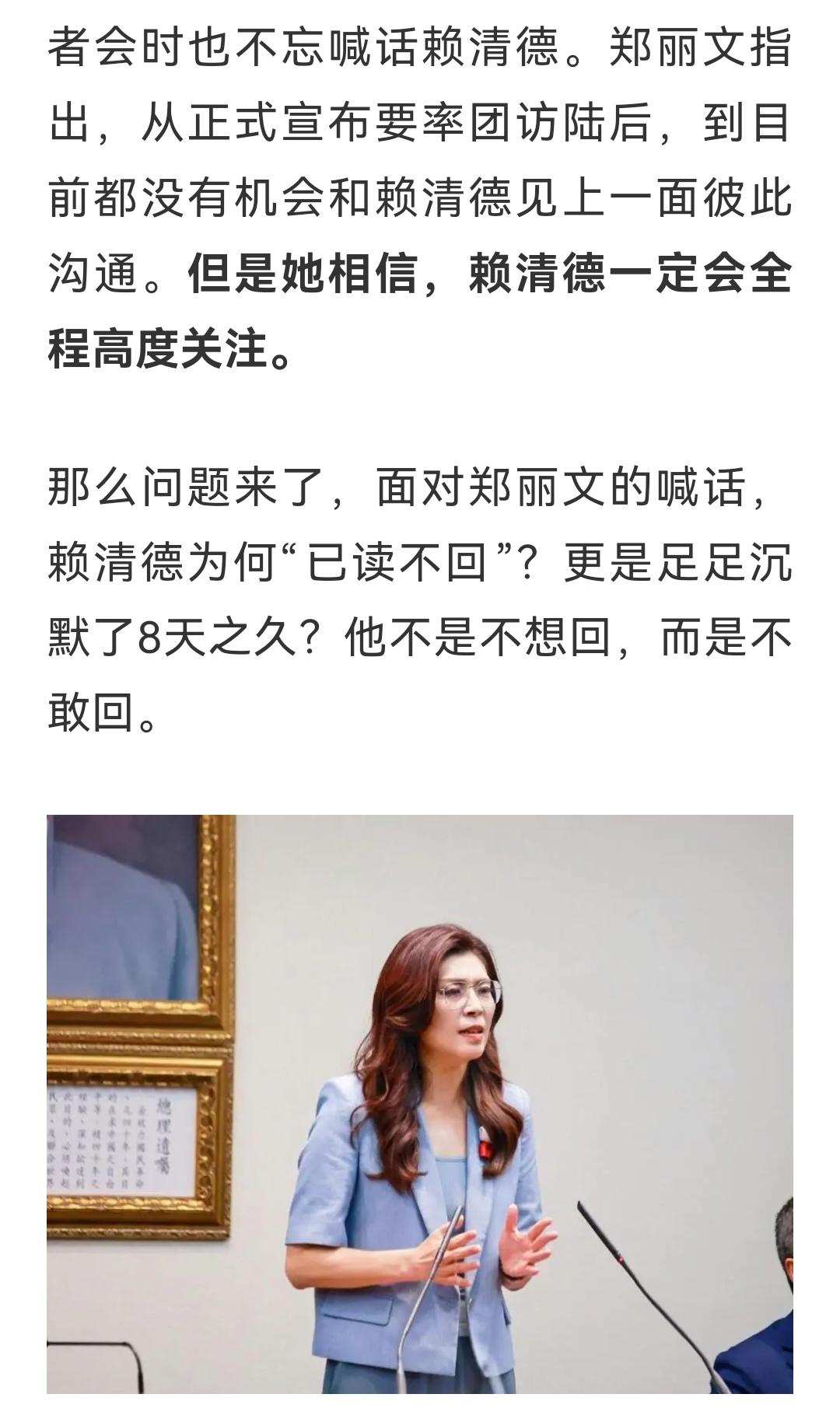 完全平等,郑丽文来访,就可以看出来了,充分尊重,高规格接待,对等交流,党与党对等