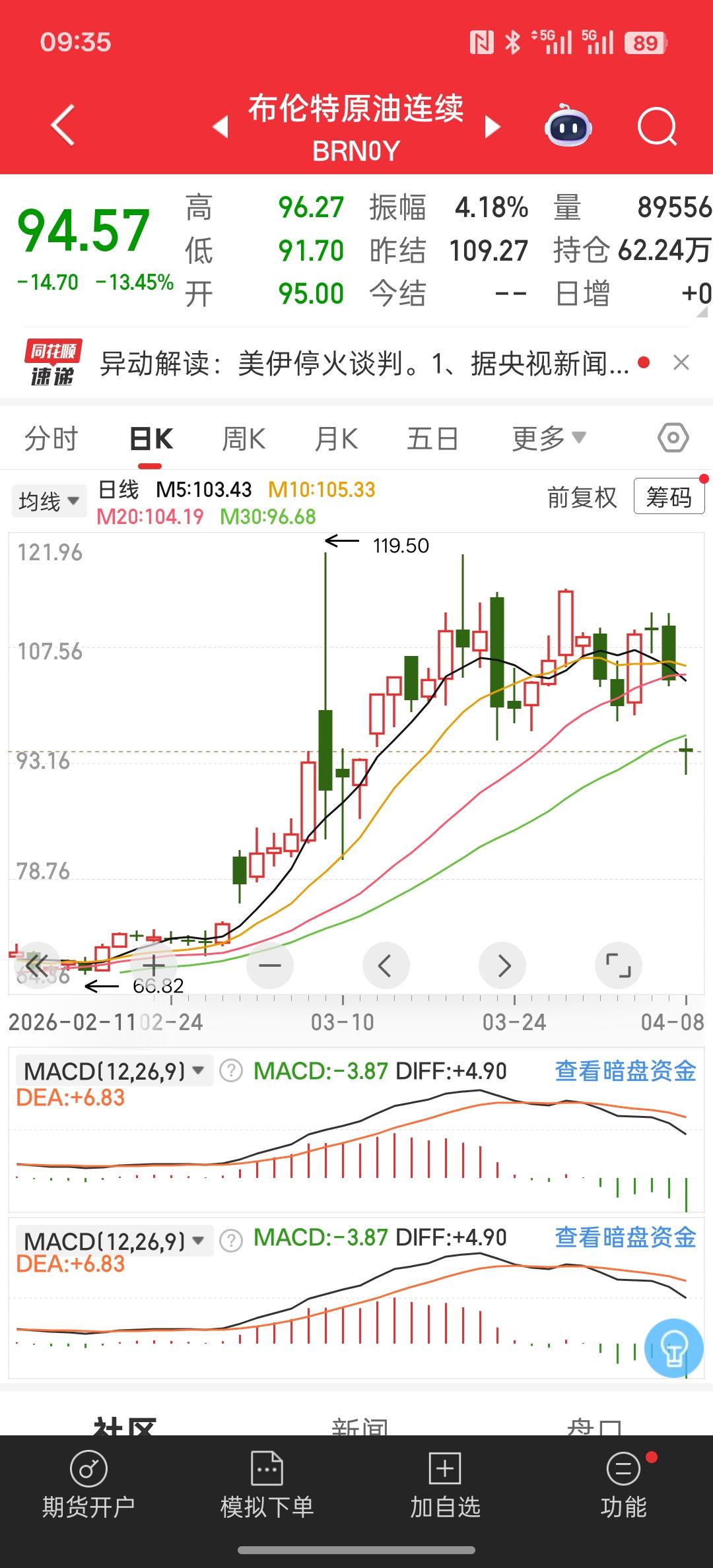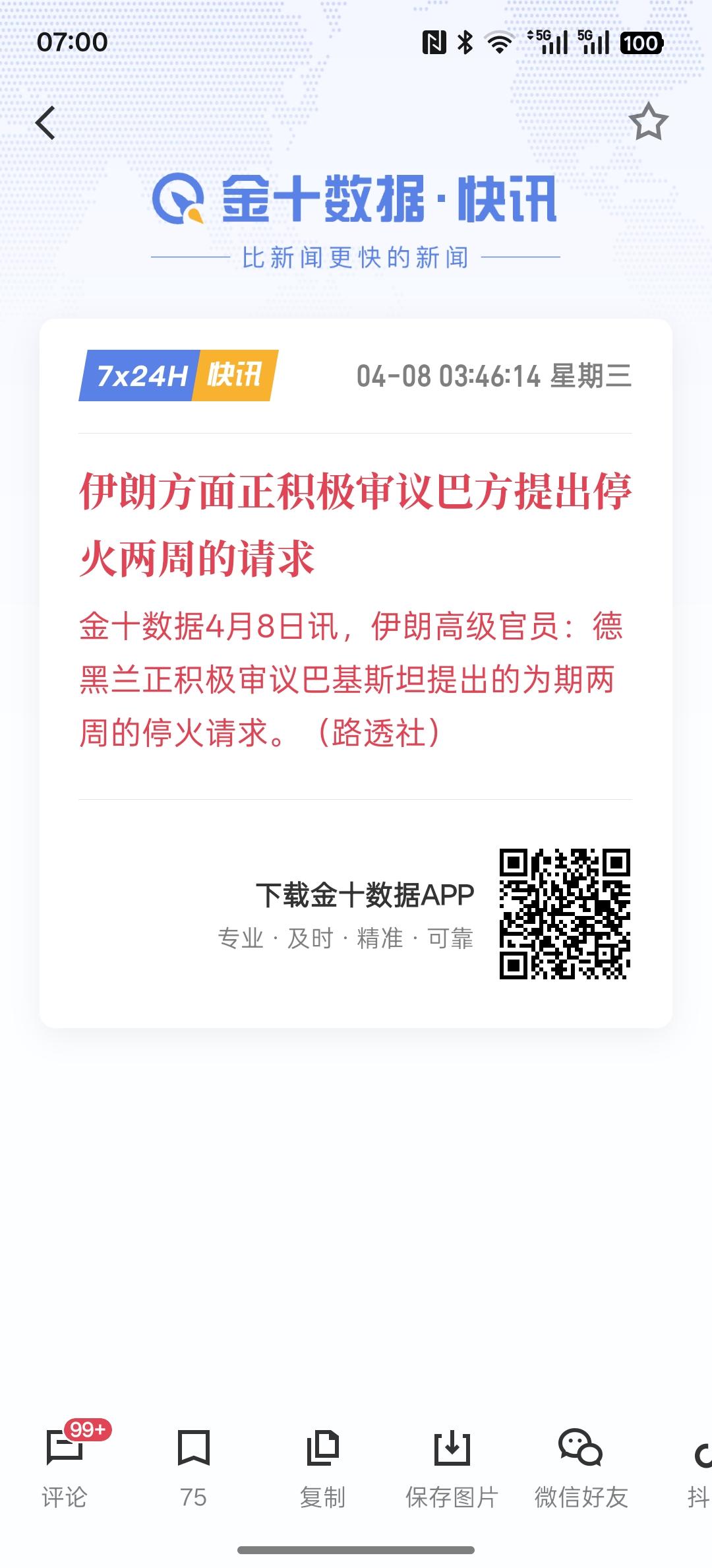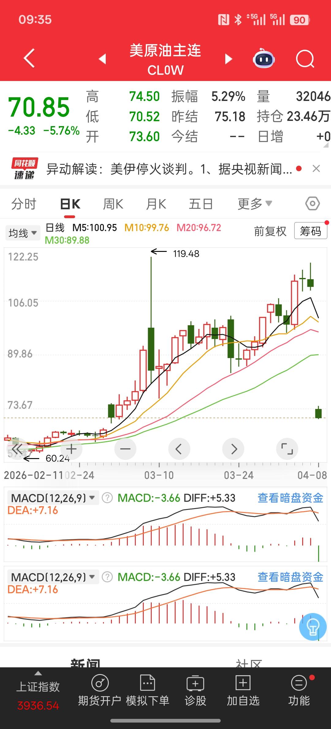 受到美国与巴基斯坦停火两周的消息,原油价格在短短几分钟从110美元直接跌到70美元左右!如果接下来美国与伊朗在这十天半个月之间进行谈判,如果能达成协议,那买原油的买在110美元左右的位置,那基本上未来就很难再达到这个位置卖出!基本上就被套牢!未来的原油价格可能就在70到50美元左右,只要不发生战争,尤其是中东地区达成和平协议,甚至永久性的停火。那么,原油的价格基本上就不可能再回到100美元左右! 资本市场未来将迎来一个比较好的行情走势! 受到伊朗与美国之间的停火,整个资本市场今天迎来了一个大幅上涨的局势!