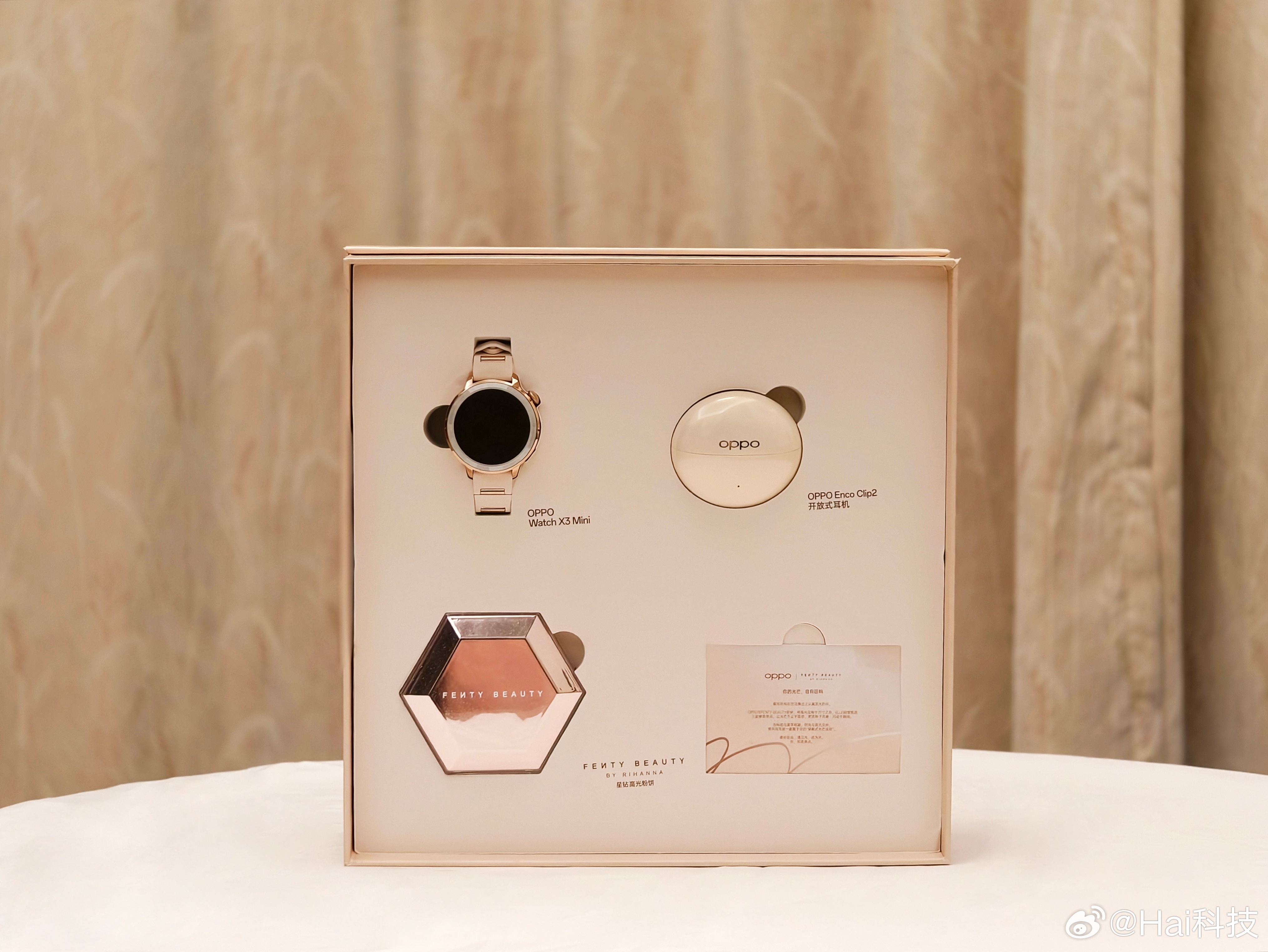 收到OPPO联合FENTY BEAUTY打造的「我的高光时刻」礼盒,整套闪耀如金,真每一面都高光!1.OPPOWatchX3Mini超美小金表,1.32英寸,小巧雅致,打造腕上高光2.OPPOEncoClip2轻巧无感,佩戴雅致,打造耳边高光3.FENTY BEAUTY 星钻高光粉饼,时刻闪耀,打造妆容高光这一套真心雅致,很适合女生兄弟们懂吧~OPPO耳夹耳机OPPO手表