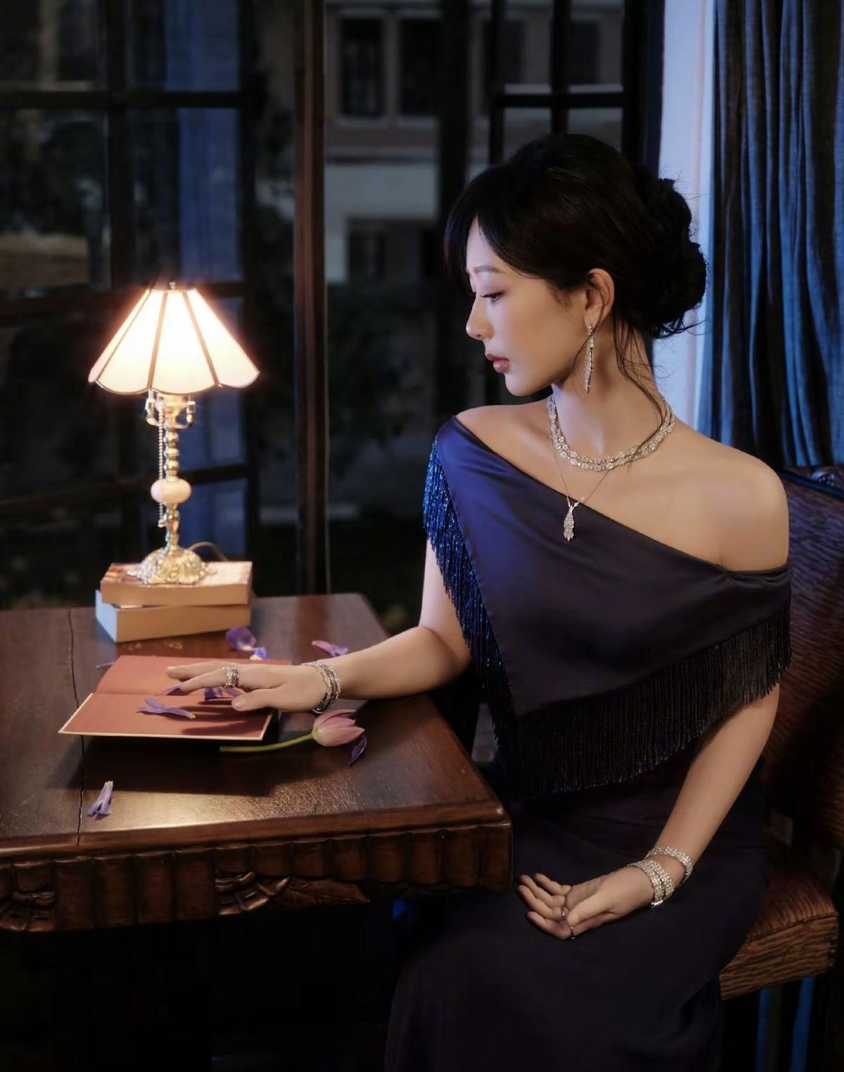 被杨紫的APM造型美到失语!宝蓝礼服勾勒优越肩颈线,钻光闪耀显贵气又不俗气,生图抗打,状态满分,不愧是品牌全球代言人[赞]娱乐明星