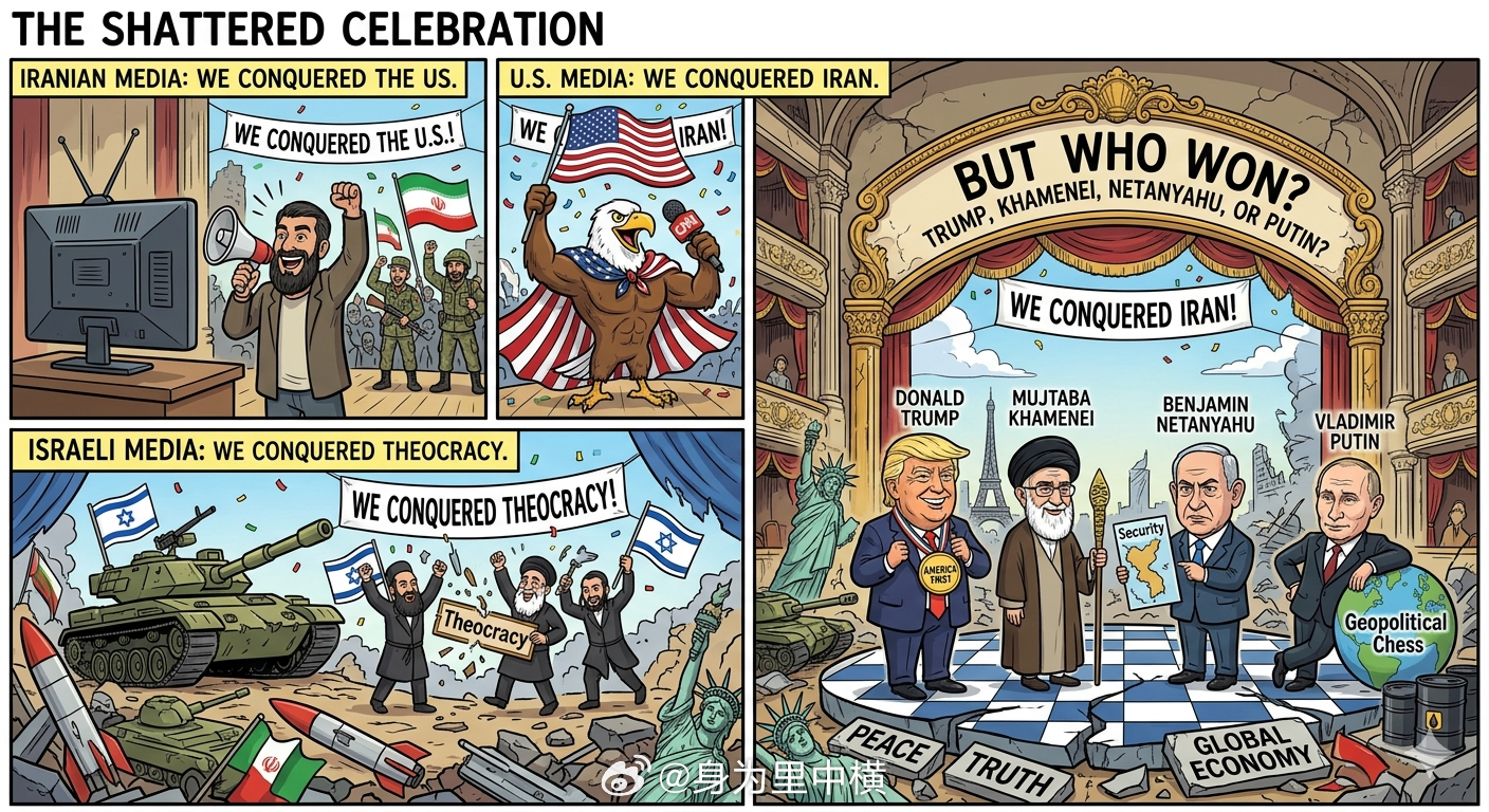 👉伊朗媒体:我们战胜了美国👉美国媒体:我们战胜了伊朗👉以色列媒体:我们战胜了神权❓特朗普,伊朗最高领袖穆杰塔巴·哈梅内伊,内塔尼亚胡,普京他们之中谁是最终的胜利者?!🚨谁是真正的“获胜者”?如果我们脱离媒体的宣传,从地缘政治的实质效果来看:👉从避免战争的角度来看:全员获胜。在美伊对立、以伊空袭不断升级的情况下,达成停火协议避免了中东陷入一场由于误判而引发的全面地区战争。这对所有各方(包括平民)都是一种“胜利”。👉从战略灵活性来看:普京是潜在赢家。俄罗斯在这一过程中保持了相对微妙的角色。中东的紧张局势使美国(以及可能的西方联盟)的注意力和资源从乌克兰问题上转移,这在客观上对普京有利。普京并不直接参与停火谈判的核心,但他可以通过这种紧张局势获得更大的地缘政治筹码,且不需要付出直接代价。👉从短期政治目标来看:特朗普和万斯是赢家。该协议成功将美国从战争边缘拉回,万斯因此获得了“强硬调解人”的政治资本,特朗普也证明了其可以通过“私人外交”达成国际协议。👉从地缘局势的长期僵局来看:伊朗没有失败。伊朗通过此次升级和随后的停火,向世界证明了其不仅在技术上具有远程打击和控制霍尔木兹海峡的能力(如克里斯·墨菲参议员的担忧),而且有能力在地区博弈中与美国、以色列达成对等的协议。🚨总之,没有单一的“最终胜利者”。各方都在利用媒体将这一复杂的战术外交结果,包装成其各自长期战略的成功。这只是一场长达数十年、错综复杂的影子战争中的一次临时休战。👉在国际政治中,“获胜者”往往是那些能够在混乱中维持自身地位、避免最大损失、并能将局势发展转化为国内政治资本的一方。