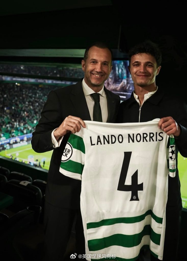 【F1冠军看欧冠】葡萄牙体育0比1阿森纳 F1世界冠军兰多诺里斯,带着女友在看台上面观战,赛前葡体官方还向他赠送了球衣。