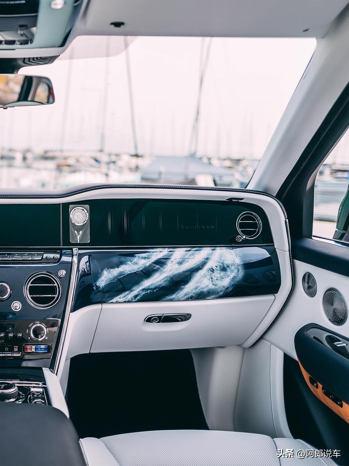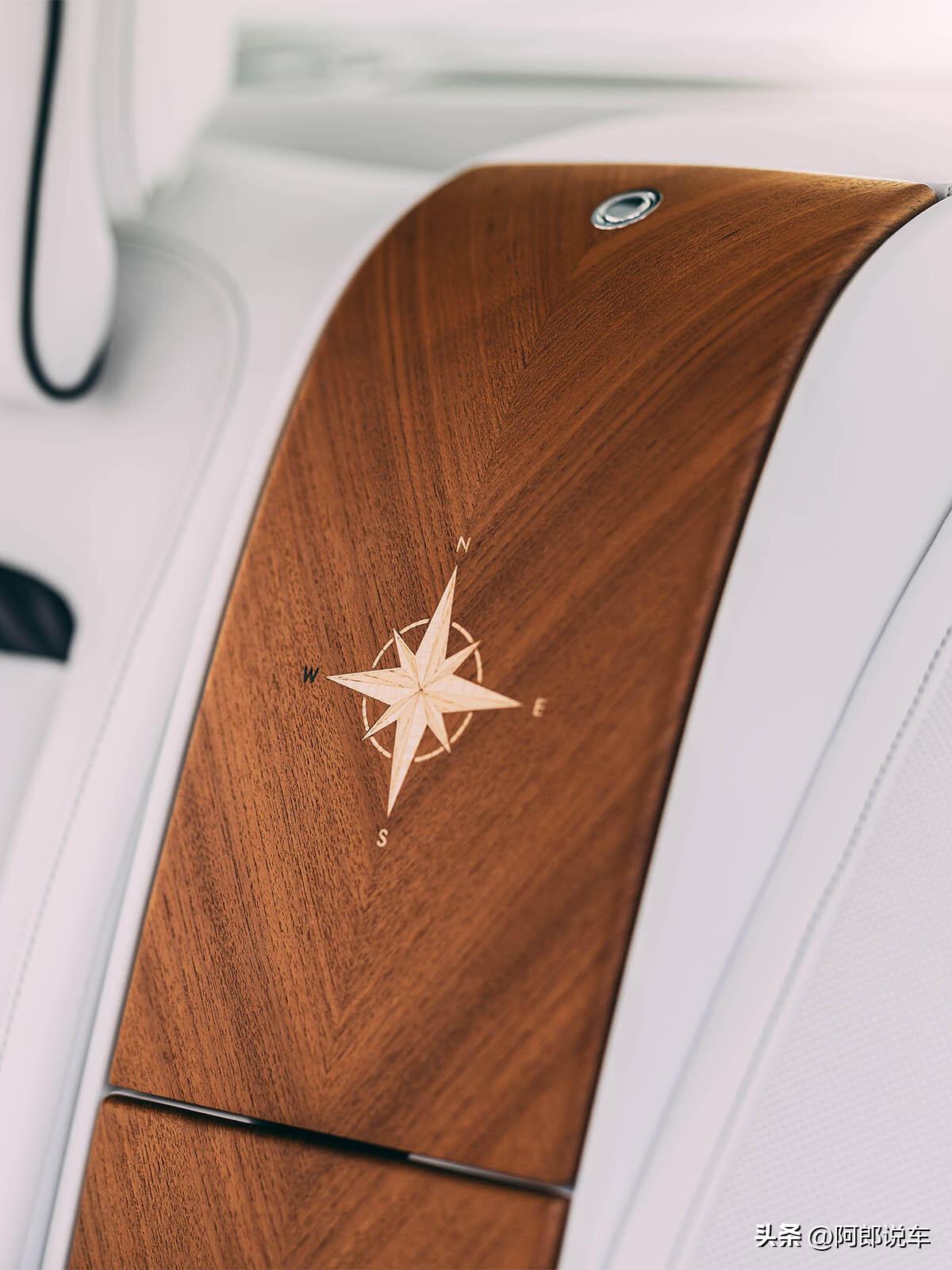 劳斯莱斯定制库里南,航海浪漫直接拉满🌊 劳斯莱斯Bespoke这次真的玩出格调了!溯源圣玛丽亚号百年航海情结,以东、南、西、北四大方位为灵感,把蔚蓝海岸的游艇风情,完完整整融进库里南,打造专属定制孤品。 全车铺满航海级柚木,从内到外是工匠手工精雕,这可是顶级游艇才配的材质,温润质感一眼就懂。 仪表板上手绘快艇尾波纹理,灵动的海浪痕,像快艇迎着方位破浪入海的瞬间。 后排罗盘东西南北的方位标识,用四十余片柚木手工镶拼而成,每一片纹理都不同,航海仪式感直接拉满。再配上动态星空顶篷,抬头就是漫天星辰,和整车航海设计相融,仿佛坐在游艇上,吹着海风看星辰。 把百年航海情怀和方位浪漫藏进每一处细节,这样的定制款,才是顶级奢华该有的样子~ 你们最心动哪个方位的设计?评论区聊聊~