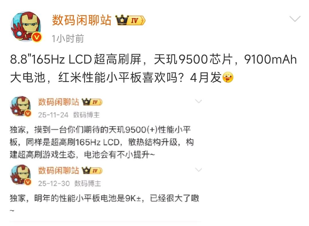 天玑9500,8.8寸 3K 165Hz LCD屏,9100mAh大电池!看看价格如何?
