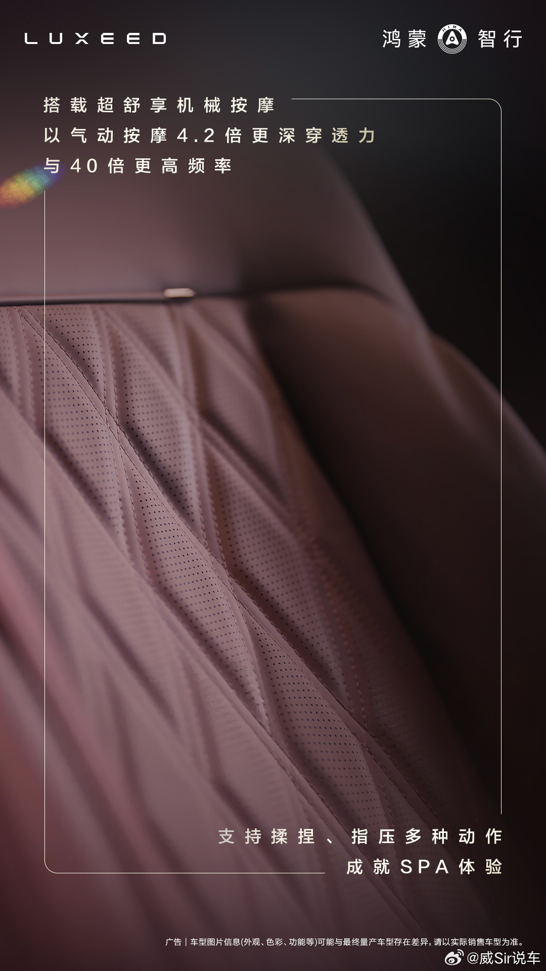 智界V9官宣搭载机械按摩 智界V9官宣搭载机械按摩、主动侧翼等多项座椅黑科技,作为鸿蒙智行首款旗舰MPV,配备太空舒躺、双零重力座椅,采用全粒面Nappa头层真皮与多层舒适填充,堪称50万级MPV舒适天花板。在三大头等舱横评中广受好评,获评“头等舱中的头等舱”,以科技舒适重新定义高端MPV旗舰标准 北京