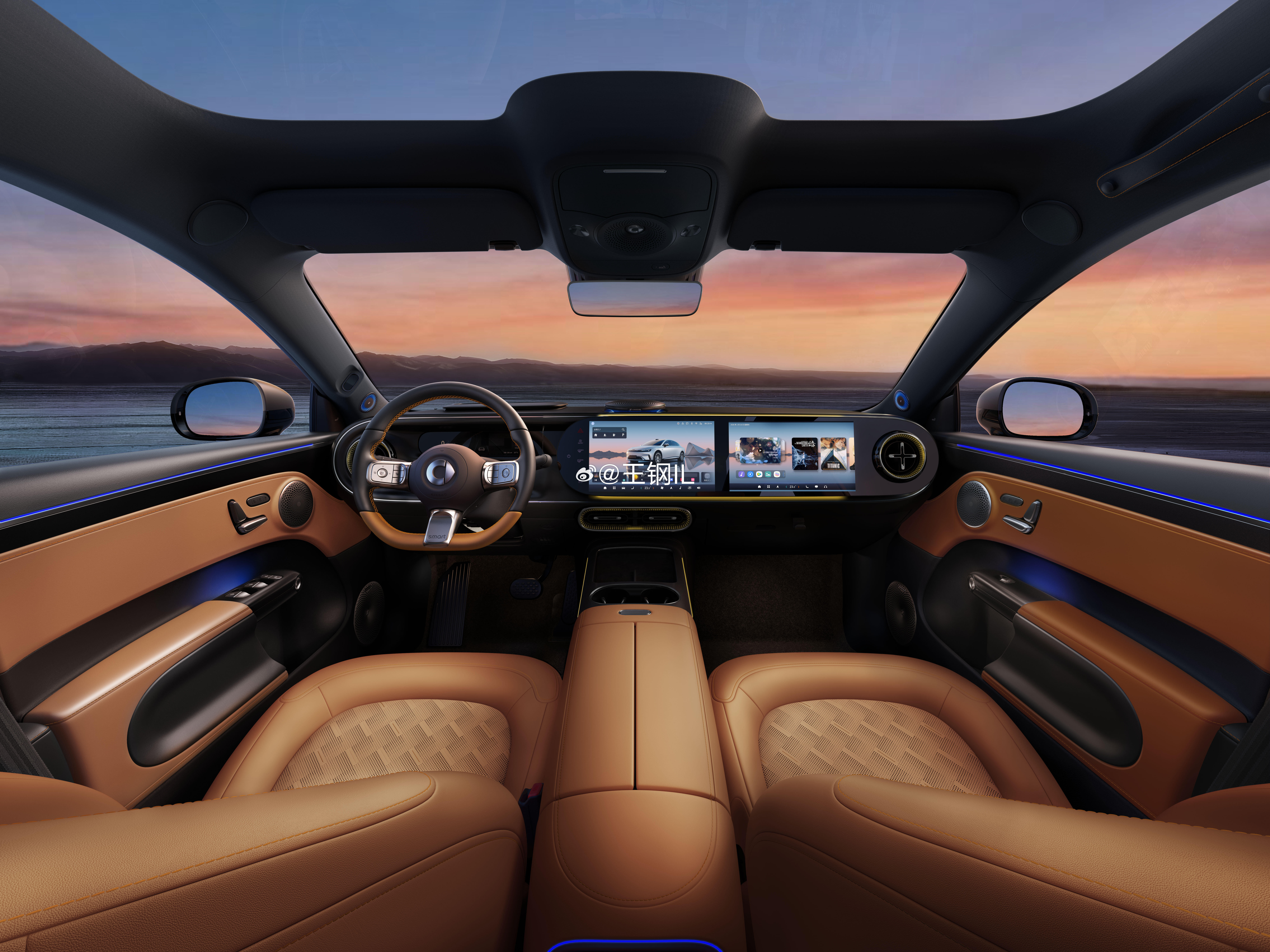 全新smart 精灵6号正式释放出内饰细节图啦,座舱内集结了高定时尚设计,有殿堂级音响森海塞尔,配了奔驰S级同款256色氛围灯,还带氛围灯的涡轮出风口。smart精灵6号
