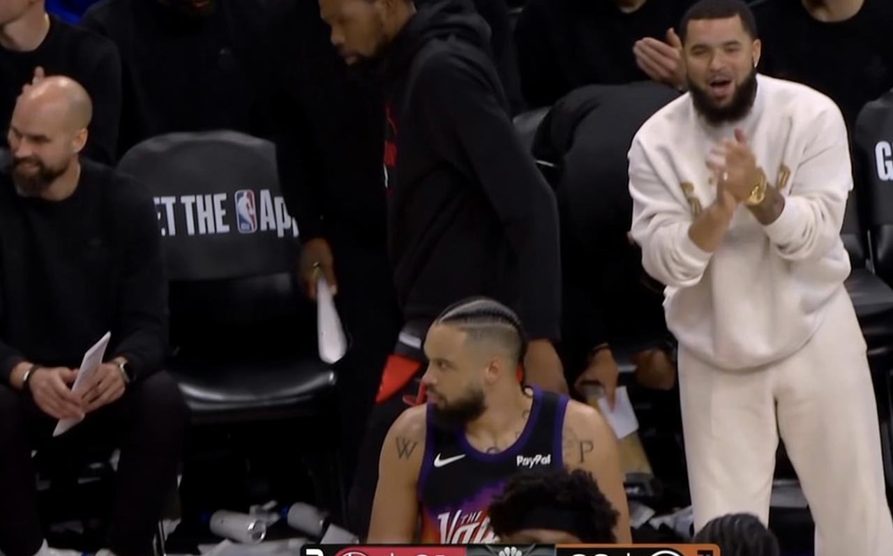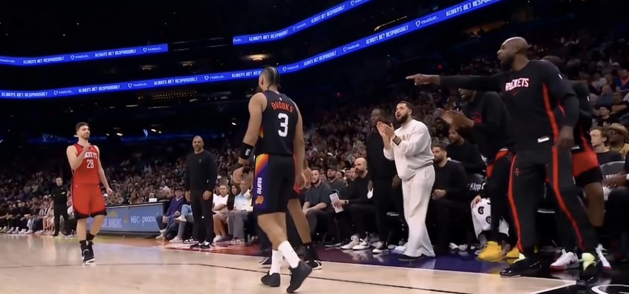 狄龙被火箭板凳席集体嘲讽了! 第四节8分29秒,狄龙在防小贾时,被后者假动作骗了个3分犯规! 因为犯规的位置刚好在火箭板凳席前面,在裁判响哨后,火箭板凳席几近疯狂,集体站起来,对着狄龙又是鼓掌又是喷垃圾话! 从画面中可以看到,杜兰特和范弗里特是最先站起来带头对着狄龙鼓掌的,老将杰夫格林更是伸手指着狄龙,个个嘴里念念有词,而狄龙则是低着头,显得有些沮丧! 不得不说,这场狄龙和火箭球员之间的“私人恩怨”,甚至比比赛本身和精彩! 上半场被泰特犯规后跨人挑衅,第三节被谢泼德凶狠搂脖子犯规,再这次犯规后被火箭群嘲,可以想象,狄龙赛后跟火箭球员打招呼时,又会是一番怎样的和谐画面? 狄龙在火箭效力的两个赛季,深受队友和休城球迷喜爱,不过现在是直接交手的对手,场上自然都会凶狠一点,这也是火箭与太阳比赛的头号看点!