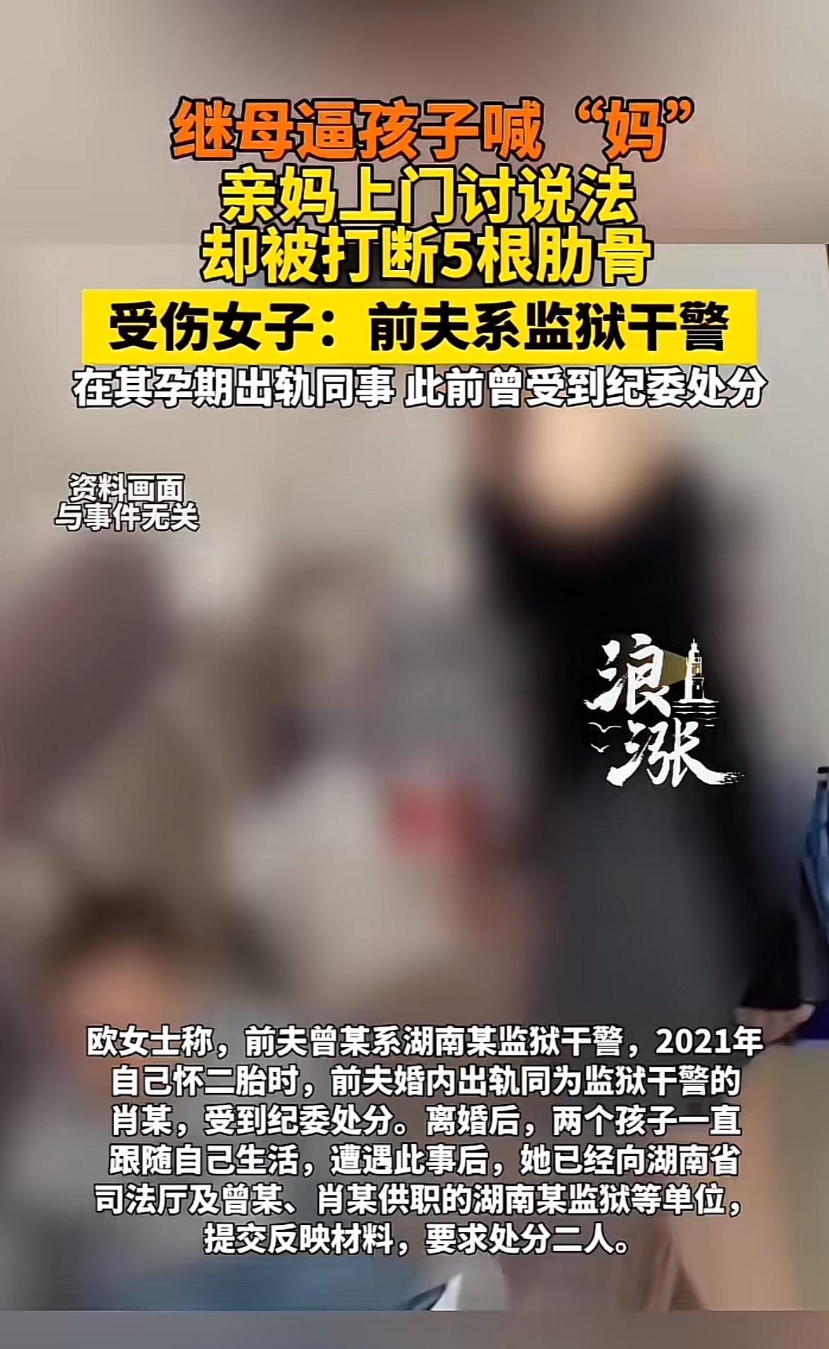 湖南娄底新化县这事儿太让人无语了。欧女士孩子被继母肖某逼喊“妈”,她上门理论,结果被打成5根肋骨骨折,达到轻伤二级。这肖某和欧女士前夫曾某可都是体制内人员,曾某还是监狱干警,这身份和他们的行为反差太大,简直是在挑战公平正义。 欧女士说孩子成单亲后,前夫没好好抚养,肖某还用不买玩具等方式逼孩子改口,换谁都不能接受。肖某不仅不理智解决,还动手,事后还想推脱责任。前夫曾某也有问题,被举报婚内出轨还受了处分。现在案子刑事立案了,真希望能给欧女士一个公道。
