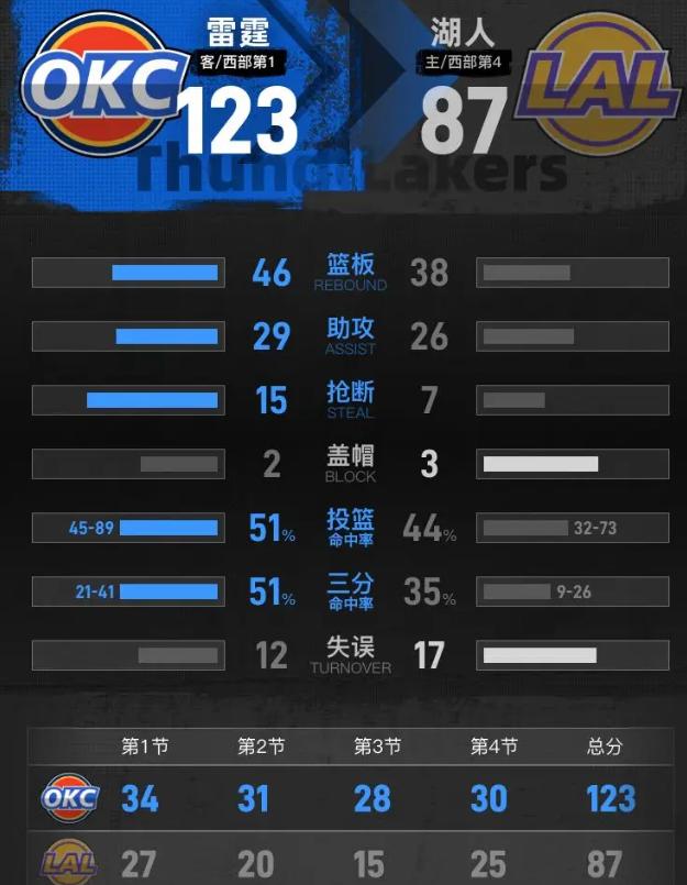 123比87,雷霆赢了36分,但SGA赛后毛巾都懒得拧——对付一支发展联盟联队,出汗都是给面子。 这场屠杀,味同嚼蜡。亚历山大28分钟25分8助攻,闲庭信步;切特15分10板,内线游龙。可你细琢磨,这哪是季后赛预演?分明是泰森揍哭幼儿园,赢了应该,输了才该上头条。 湖人那边,底裤输光,却输得坦荡。詹东里?全躺了。八村塁15分算尽忠,德鲁·蒂米11分算救主,剩下那帮名字烫嘴的边缘人,上半场还能咬咬牙,第三节雷霆一上强度,16比3的攻击波,直接崩成渣。 更扎心的是暂停时JJ雷迪克和范德比尔特对喷——巧妇难为无米之炊,牌烂到这份上,教练和球员互相撕巴,这不叫内讧,这叫绝望的透气。 雷霆真就值得夸?他们防守轮转快如电,三分箭如雨下,六连胜稳稳吃掉"福利局"。可怕的不是赢36分,是SGA眼里那股"还没用力你就倒下了"的冷漠。这才是冠军相——不因对手弱而懈怠,趁你病要你命,这是篮球场上最真诚的尊重。 湖人呢?从13战12胜到三连败,一溃千里。这落差像过山车,顶端是总冠军幻想,谷底是乐透现实。可这就是建队的荒诞:三巨头把球队扛进前四,一伤全完,阵容深度薄得像张卫生纸。 说到底,雷霆在秀肌肉,湖人在秀底线。一个证明"我有多强",一个暴露"我有多脆"。当洛杉矶的灯光照在陌生球衣上,你忽然懂了——篮球不相信眼泪,只相信健康。这36分惨败,是雷霆通往王座的垫脚石,也是湖人夏天的闹钟。别谈精神了,生存面前,先活下来才是硬道理。