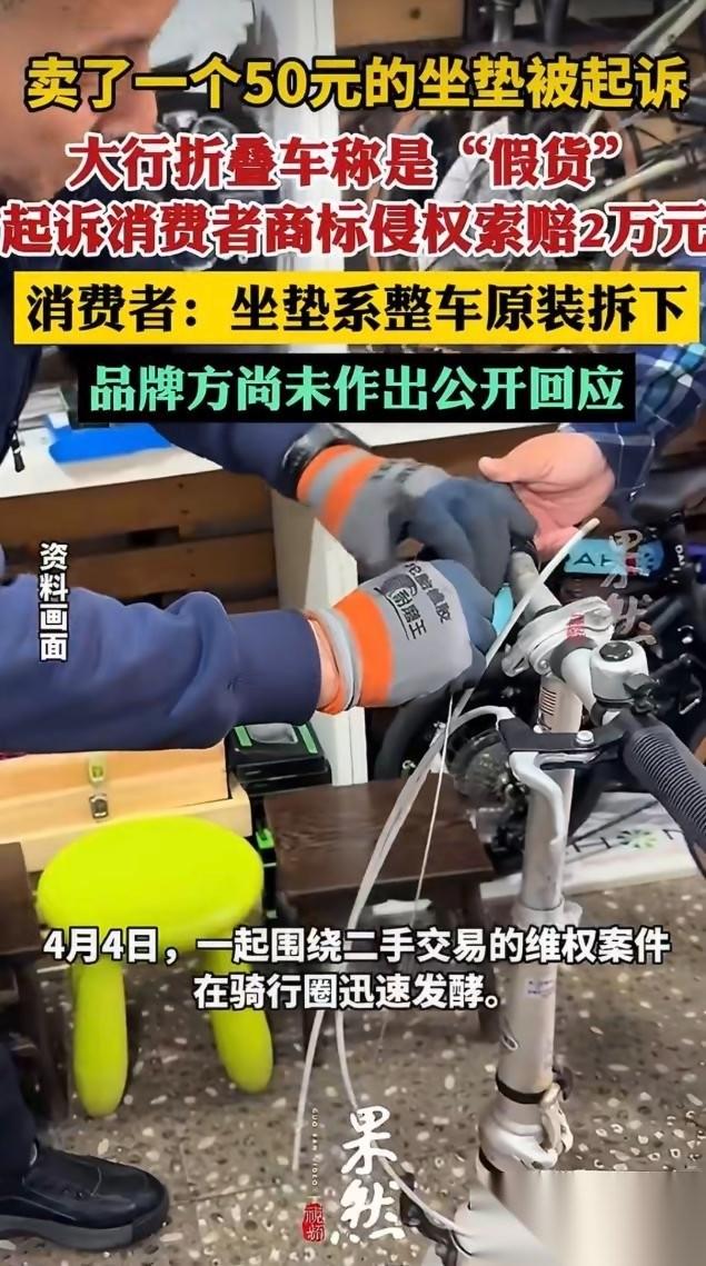 辽宁有个男的,在闲鱼上卖了个自行车坐垫,五十块钱,包邮。本来觉得就是随手清个闲置,卖完就忘了。结果一年后,法院传票直接寄到了家门口。大行折叠车公司一张嘴就要人家赔两万块。这“溢价”400倍的天价索赔,真让人开了眼。 其实品牌方玩的是套流水线取证的把戏。 先披个马甲匿名下单,再自己给自己出个鉴定报告,一口咬定是假货。 人家老李也是个老骑友了,那辆三千多块的P8明明是在正规车店提的。但仔细想想,谁买自行车还会专门给原装坐垫录个拆卸视频、抄下防伪码留底?品牌方就是捏准了普通卖家拿不出证据的死穴。靠着自己手里那点单方鉴定权,直接搞“降维打击”。 这套打法算得很精,稳赚不赔。 真去端那些制假造假的老窝,费时费力。不如跑闲鱼上“定向收割”普通人。只要打赢几场官司,养法务团队的钱就全赚回来了。 但在法律层面,这事站不住脚。 有个基本原则叫“权利穷竭”。正品只要卖给了消费者,人家怎么转让、怎么处理,那就是个人的合法权利。品牌方没资格跑来卡脖子,限制闲置买卖。 打着维权的幌子,干着“创收”的买卖,这种品牌霸凌绝不能惯着。 法律是用来收拾恶意侵权的,不是给大厂当敛财工具的。要是随便卖个旧配件都得提防着倾家荡产,以后谁还敢在网上出二手?靠信任撑起来的闲置循环体系,干脆趁早关门得了。 拿着正义当镰刀收割普通人,吃相太难看。 大厂要是把枪口对准自家用户,被大家伙儿抛弃,也就是迟早的事。 对此,你怎么看?