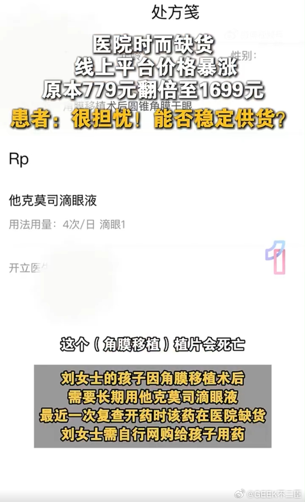 779元滴眼液暴涨至3382元刚需药被恶意炒高,普通患者用不起,停药就可能失明,