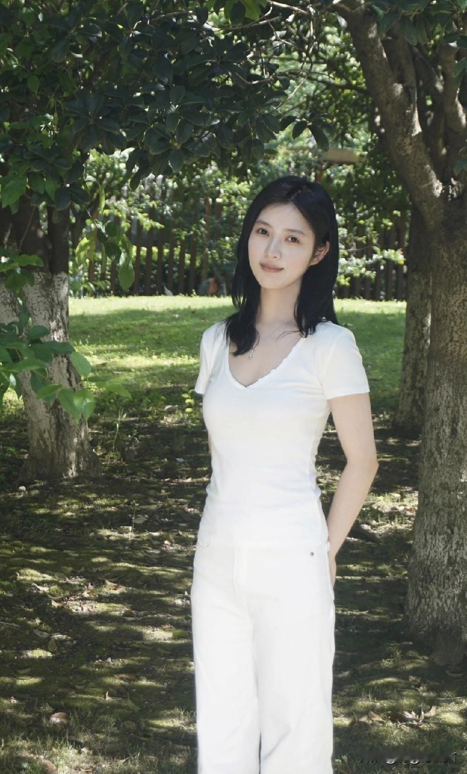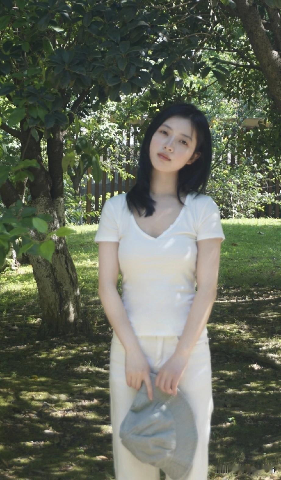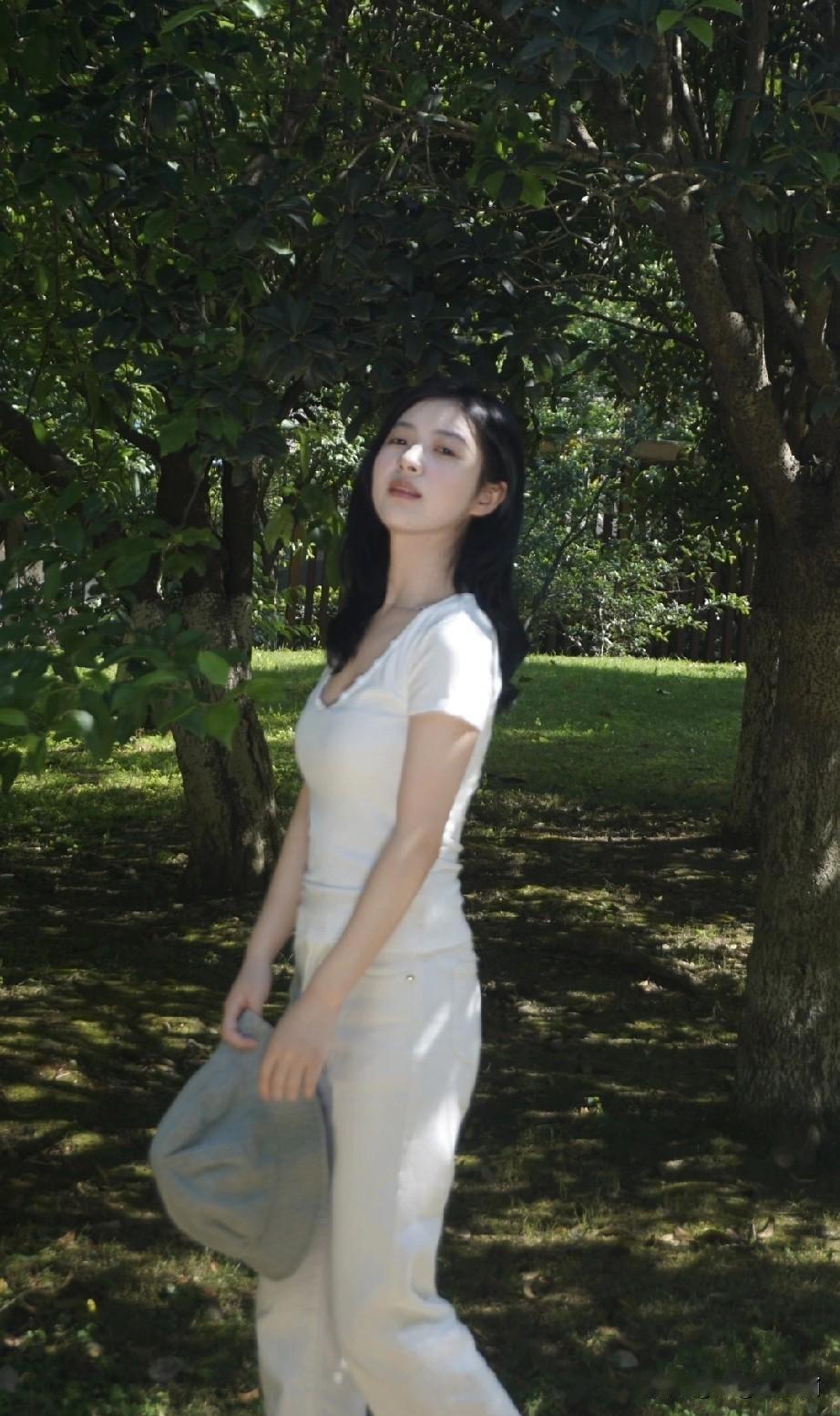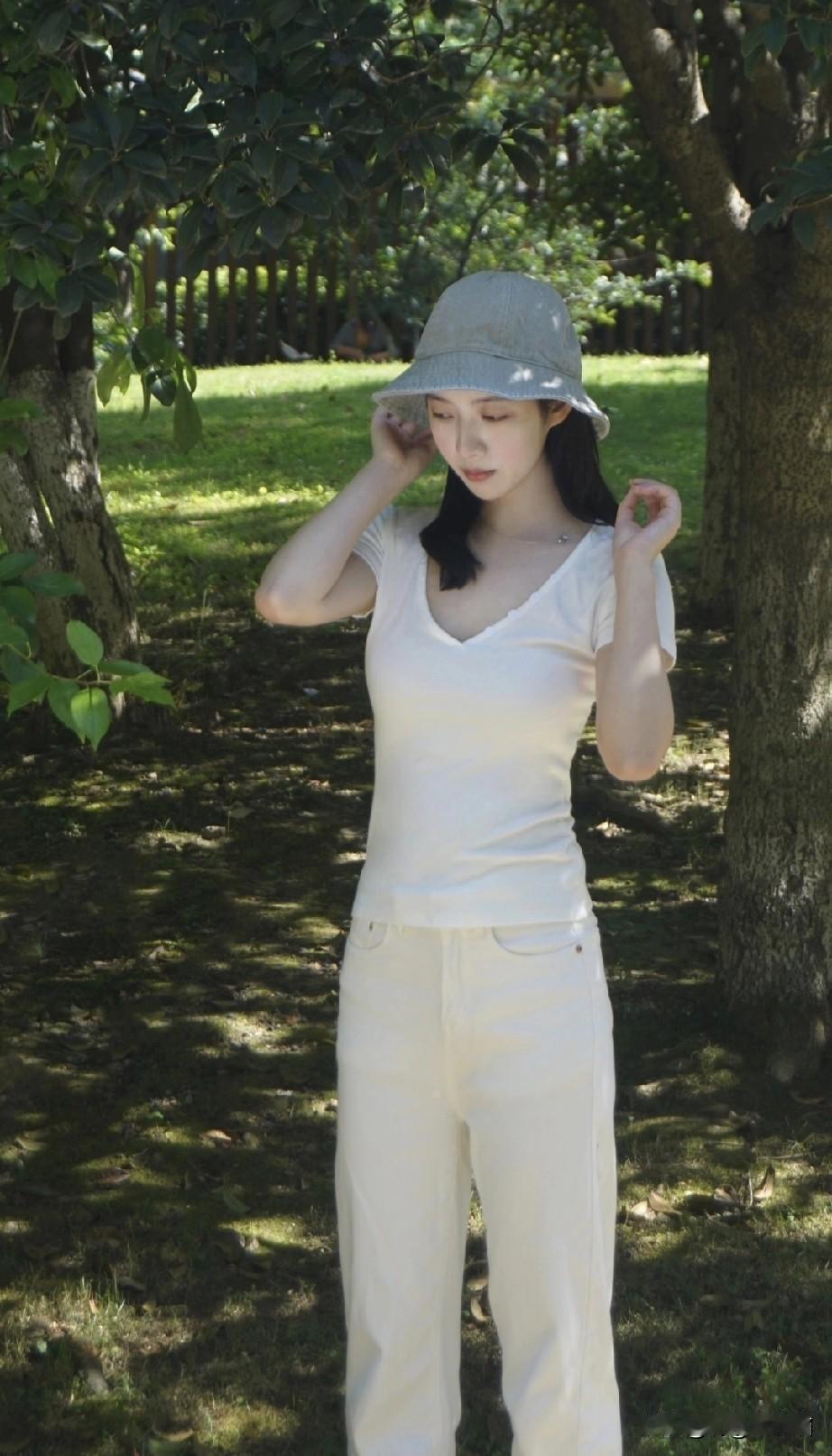 夏日林间的松弛感 阳光下的清新少女,自然与优雅的完美结合。 穿过层层叠叠的绿叶,在林间洒下斑驳的光影,她就站在这片温柔的绿意里。一身简约的白色V领T恤搭配同色系阔腿裤,没有多余的装饰,却把松弛感拉满。黑发散落在肩头,或抬首迎向阳光,或低头轻扶帽檐,每一个姿态都自然舒展。 光影在她身上流动,时而勾勒出柔和的轮廓,时而藏起细碎的情绪,像把整个夏天的温柔都揉进了镜头里。没有刻意的摆拍,只是简单的与自然相融的松弛感,让人一眼就爱上这份不被打扰的清新与美好,仿佛连风都慢了下来,只为定格这片刻的治愈。 图片来源于网络,侵权删。
