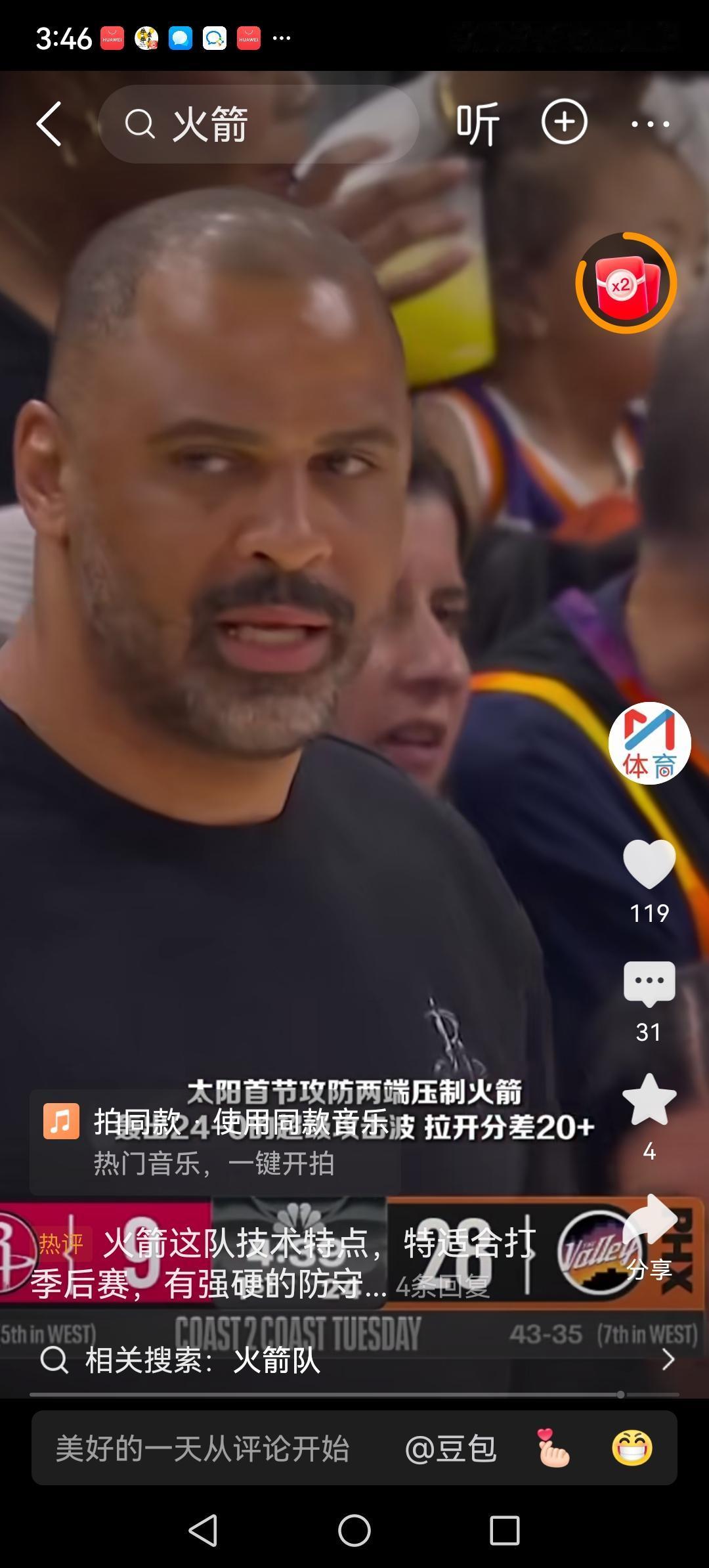 今天没有想到火箭能够在落后21分的情况下完成大逆转,这样的情况对火箭来说简直是罕见。 第1节结束,火箭就落后了20分。一气之下我就不看转播了,等到比赛结束再看一下结果,我大吃一惊,居然 119比105大胜了太阳,不得不说这支太阳真菜,要么就是去年在火箭的格林和狄龙做了卧底。 再看火箭还是依靠了团队完成了逆转,这场比赛火箭有7人得分上双,三人得分上20加。杜兰特中规中矩,贡献了全队最高的24分,史密斯20分。阿门20分11个篮板8助攻3抢断1盖帽,是火箭第4节完成逆转的大功臣。