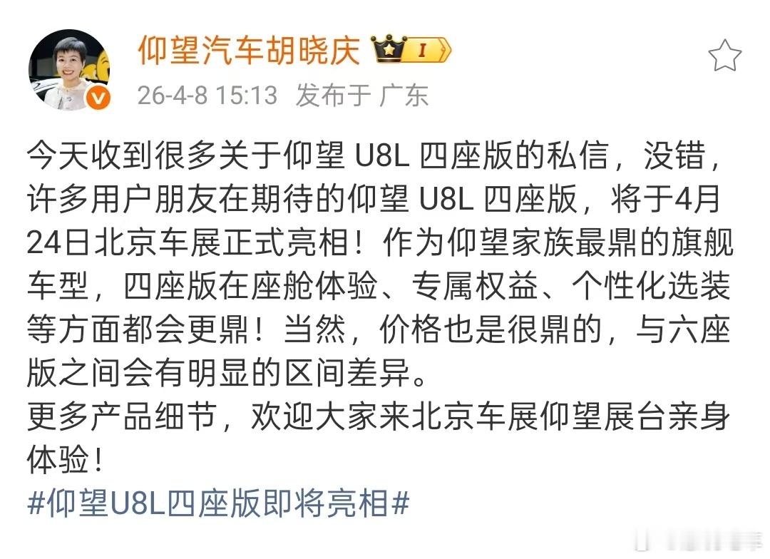 这四座版的确很尊呀。汽车仰望u8l