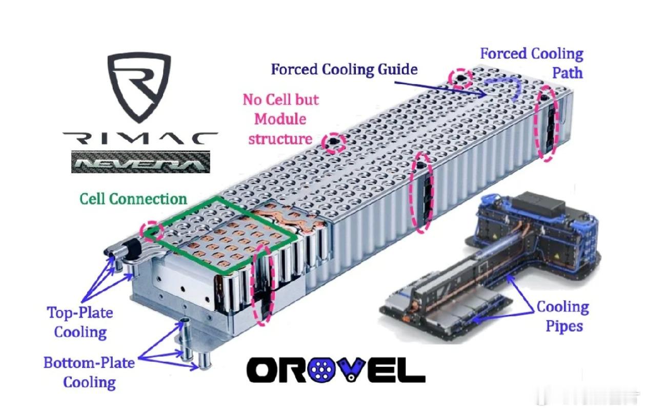 我不知道电池包的冷媒直冷和液冷有什么好吵的,和 Rimac Nevera 的浸没式液冷比都是渣渣。哪怕是保时捷 Taycan Turbo (图2) ,也只是双面液冷。