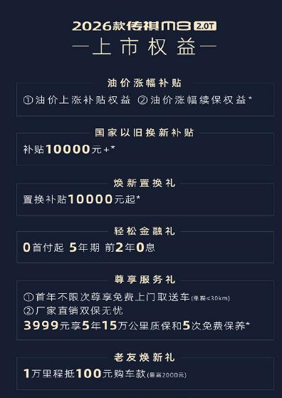 2026款传祺M8 2.0T焕新登场,单配置尊享版指导价18.98万,政企双补后16.98万起,豪华MPV打入16万级。 配置升级:新增L2级辅助驾驶、华为云桌面、CarPlay/Carlife,电镀件升级炝灰工艺,中控台换木纹,新增浅色内饰。二排航空座椅通风加热按摩、双侧电滑门、无风感空调全保留。 购车权益:油价补贴至高2000元、以旧换新+置换各补1万、0首付5年贷前2年0息,还有上门取送车与双保无忧。 不买新能源,20万以里想买个真7座MVP,这车现在挺合适,而且传祺M8有8年历史了,保值率在自主品牌里也排得上号,成熟可靠不踩坑。【来自懂车帝车友圈】