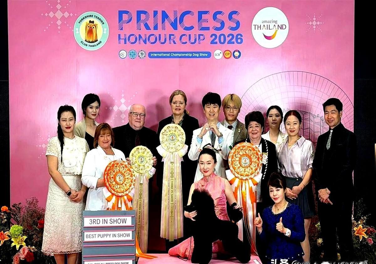 霍思燕把爱好玩出圈了!她家狗狗在泰国公主杯国际犬展拿了幼犬组全场总冠军! 杜江连夜发文报喜,霍思燕身穿粉色旗袍素颜牵犬,那气场真是绝了。嗯哼也跟着去了,都快赶上妈妈高了。 据说她家狗狗不仅连过评审,还打败了日本排名靠前的赛犬。霍思燕激动得现场都哭了。 这可不是第一次,去年她们在比利时也拿过冠军,把兴趣真做成了专业。 流量时代,能把爱好踏实做成“硬通货”,太酷了!