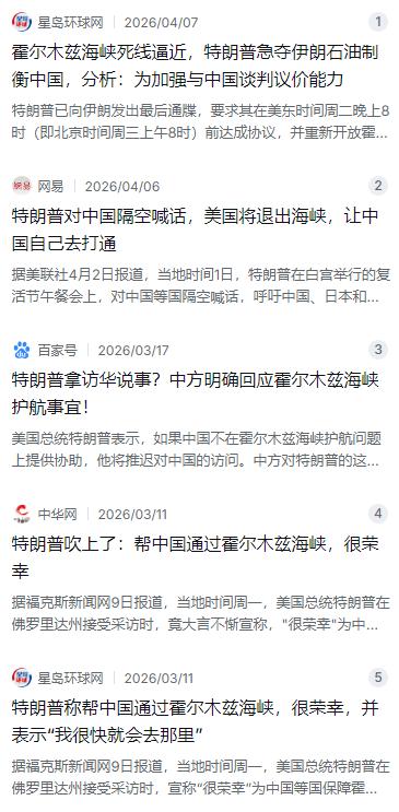 特朗普又放了个大招,这次不是加关税,而是公开喊话让中国去“打通”霍尔木兹海峡。 麻烦看官老爷们右上角点击一下“关注”,既方便您进行讨论和分享,又能给您带来更多优质的内容,感谢您的支持! 事情还得从2026年2月底说起。美国和以色列对伊朗发动了联合军事打击,直接导致伊朗当时的最高领袖哈梅内伊在袭击中身亡。这一下可捅了马蜂窝。伊朗新上任的最高领袖穆杰塔巴·哈梅内伊,面对这杀父之仇,直接使出了杀手锏——封锁霍尔木兹海峡。这一封,全世界的经济命脉都跟着抖了三抖。 特朗普眼看这招硬碰硬不行,心思就开始活络起来。2026年3月初,他在佛罗里达州接受福克斯新闻采访时,突然话锋一转,拍着胸脯说“很荣幸”为中国等国保障霍尔木兹海峡的畅通。这还没完,到了3月15号,他坐着空军一号的时候,又对着记者嚷嚷起来。他说中国大约90%的石油都得从霍尔木兹海峡过,中国理当分担这份责任。 要说最经典的戏码,还得数4月1日那天。当时正值复活节,特朗普在白宫搞了个午餐会,对着中国、日本和韩国隔空喊话。他的逻辑相当“硬核”:美国自己有油,根本不需要中东那点东西,所以美国打算撤了。你们亚洲国家超过90%的石油都打这儿过,这摊子事你们自己看着办吧。紧接着,他又拿访问中国当筹码。他在接受《金融时报》采访时直言,如果中国不在护航问题上帮忙,他可能就要推迟访华行程了。 对于特朗普这番操作,中国这边的回应一直很稳。外交部发言人林剑在记者会上说得明白,元首外交确实很重要,但中方在霍尔木兹海峡问题上的态度是始终如一的。稍后美方又自己出来澄清了,说访华延期的事跟海峡没关系,之前的报道是误读。到了4月2日的记者会上,发言人毛宁把话说得更透:大家都很关注海峡通航问题,但现在的关键是赶紧停火。只有停火了,中东才能安稳,这是国际社会都想看到的局面。 要说特朗普最出格的一招,是他把矛头对准了伊朗的石油。据彭博社报道,特朗普政府内部在盘算,能不能像之前在委内瑞拉那样,把伊朗的石油控制权抢过来当筹码。他们的算盘打得很精,觉得中国是全球最大的原油进口国,要是美国掐住了伊朗的石油,就能在贸易谈判桌上压中国一头。这招简直是把国际法当儿戏。路透社的分析也是一针见血:美国这是打错了算盘。中国早就开始布局了,能源进口渠道早已不再单一。 特朗普把这事儿搞成了大型连续剧,每天都有新剧情。到了4月初,美伊冲突已经打了快40天,局势越来越糟。特朗普急眼了,直接给伊朗下了最后通牒。他在社交媒体上放了句狠话,说如果伊朗不在4月7日晚上8点前开放海峡,他就要在4小时内把伊朗的桥梁和发电厂全炸了。他甚至在社交媒体上发文,说那天将是“伊朗的发电厂日和大桥日”。 就在全世界都以为要开打的时候,高潮来了。距离最后期限只剩不到俩小时,特朗普突然踩了刹车。原来巴基斯坦总理夏巴兹和陆军参谋长穆尼尔赶紧出面斡旋,请求特朗普暂缓行动。伊朗那边经过最高领袖穆杰塔巴的批准,接受了停火方案。特朗普顺势宣布:停火两周,前提是伊朗必须全面、立即、安全地开放霍尔木兹海峡。停火消息一出,之前被恐慌情绪推到高点的国际油价像断了线的风筝一样,直接暴跌了17%。 就在这次停火谈判的同时,联合国安理会那边也在掰手腕。巴林搞了个决议草案,想授权各国在霍尔木兹海峡采取防御措施确保通航。为了不让中俄投反对票,他们甚至把草案里所有“动武”的字眼都删了个干净,措辞改成了鼓励各国协调采取防御性措施。结果4月7日表决那天,中俄还是双双投了否决票。中国常驻联合国代表傅聪的解释特直接:这决议虽然改了,但出发点还是错的,容易被滥用。根本问题在于这场战争是谁挑起来的。 特朗普这通操作,暴露的是美国在中东的尴尬处境。军事上打不赢,单干搞不定,那就想拉别人下水,把包袱甩给亚洲国家。特朗普甚至公开说,美国过去不需要、现在也不需要霍尔木兹海峡,你们依赖这里石油的国家,该自己去负责维护通道了。这种“我惹的祸你们来擦屁股”的逻辑,在以往是极其罕见的。 特朗普政府的算盘打得响,但账本上的数字可能没算对。特朗普反复强调中国90%的石油依赖霍尔木兹海峡,这个数字注水严重。AFP事实核查机构根据中国海关数据测算,中国进口原油中实际经过霍尔木兹海峡的比例连40%都不到。原来中国很早就开始做两手准备了。这几年中国一直在狂建战略石油储备,短短四个月内就进口了2.26亿吨石油,比同期多了3100万吨。再加上俄罗斯、非洲、美洲的油都能顶上,中国的抗风险能力比想象中强得多。路透社也承认,中国是全球最有能力应对航道封锁的国家之一。