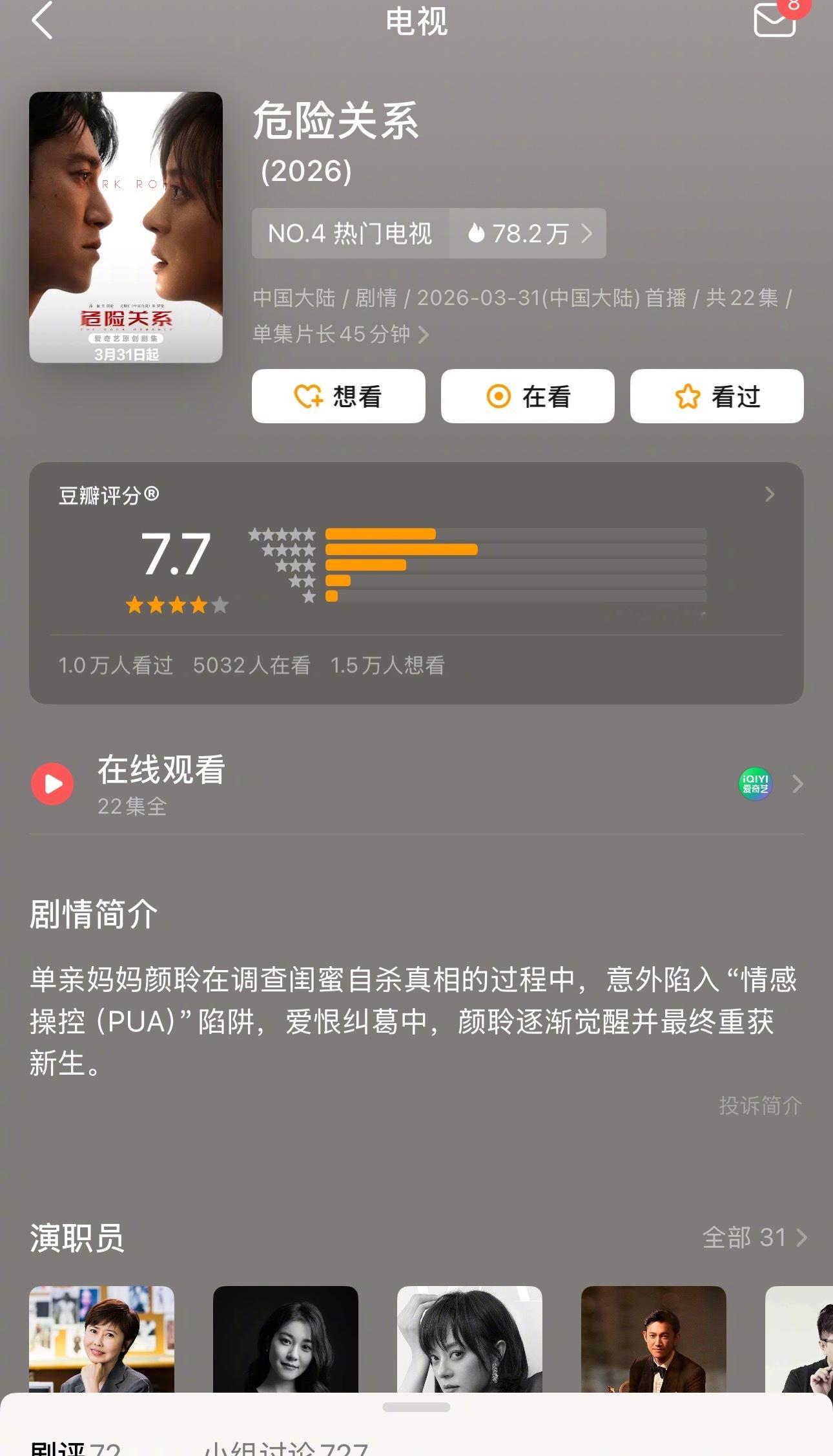 孙俪吴慷仁《危险关系》豆瓣开分7.7高了还是低了