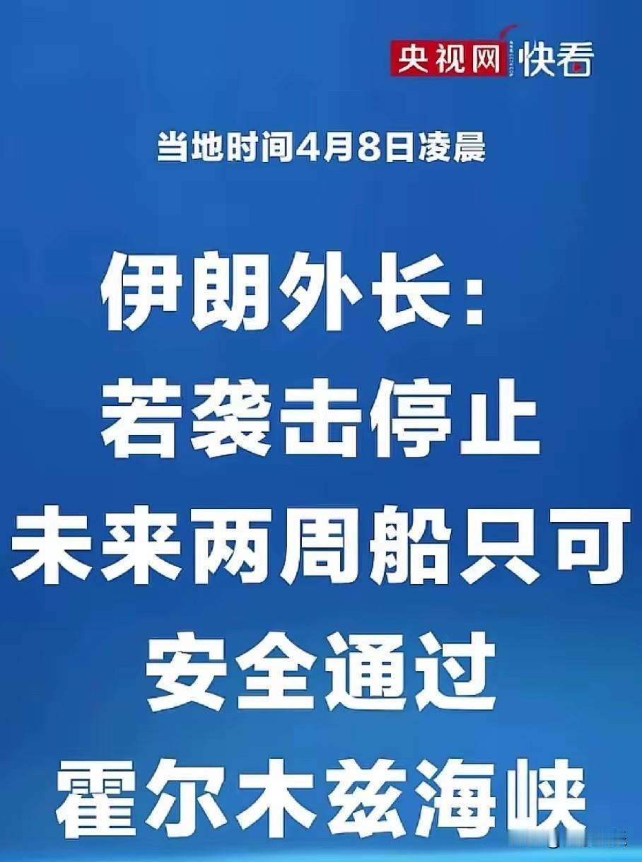 伊朗传来好消息,直接给全球航运吃下定心丸! 当地时间4月8日凌晨,伊朗外长直接放出好消息:只要袭击停止,未来两周内,所有船只都可以安全通过霍尔木兹海峡! 这话一出,被困在波斯湾里的800多艘船终于看到了曙光。426艘油轮、34艘液化气船、19艘LNG船,还有几百艘装着粮食和集装箱的货船,已经在海峡两侧漂了整整一个月。船上的海员们天天提心吊胆,这下总算能松口气了。 阿拉格齐的原话说得很谨慎:通行需要"与伊朗武装部队协调",并遵守"技术限制"。翻译成人话就是——海峡我开,但规矩我来定。这和和平时期的自由通行完全是两码事。以前每天上百艘船想走就走,现在每一条都得先跟伊朗军方打招呼。 这条件一摆出来,船东们反倒更纠结了。马士基说得直白:停火提供了通航机会,但"不足以提供恢复常态所需的安全保障"。赫伯罗特更悲观,认为至少需要六到八周,整个航线网络才能恢复正常运转。 船公司的观望不是没道理的。运价摆在那儿——原先海运到迪拜1000-2000美元/FEU,现在走多式联运已经涨到5000-6000美元。即使海峡通了,谁也不敢保证这两周里会不会再出什么幺蛾子。 不过伊朗这番表态,已经把球踢到了美国那边。最高领袖穆杰塔巴此前把话说得很死:封锁霍尔木兹海峡这个"战略杠杆",必须继续攥在手里。现在伊朗松口了,等于是给了特朗普一个台阶。只是这台阶,是伊朗人搭的。 首批船只已经在通航了。希腊籍散货船"NJ Earth"号和悬挂利比里亚国旗的"Daytona Beach"号,成为停火后第一批穿过海峡的幸运儿。更多的船还在观望,船员们挤在甲板上,看着海峡里那片熟悉又陌生的海水,心里那根弦还是绷着的。 阿拉格齐补了一句狠话:"这不是战争结束。"未来两周,只是暴风雨里的一个喘息窗口。窗口一关,是战是和,全看4月10日伊斯兰堡谈判桌上那帮人怎么谈。 各位读者你们怎么看?欢迎在评论区讨论。