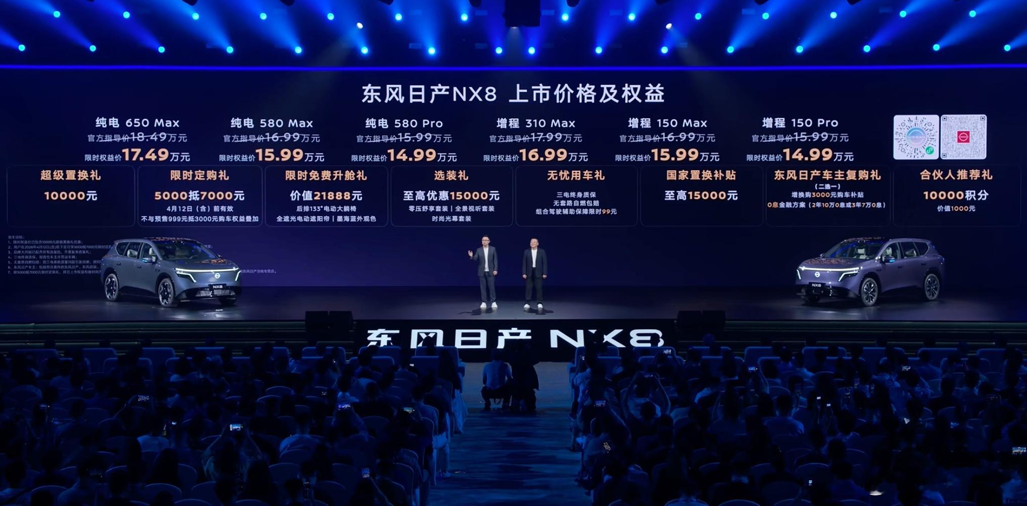 东风日产这个发布会效率也太高了吧!30分钟解决战斗!东风日产NX8 价格也太狠了!14.99万起有增程有纯电,有三电终身质保还有自燃包赔全方位无短板水桶车,家用太合适了!已经火速推荐给朋友了大大大五座NX8售14.99万起东风日产NX8