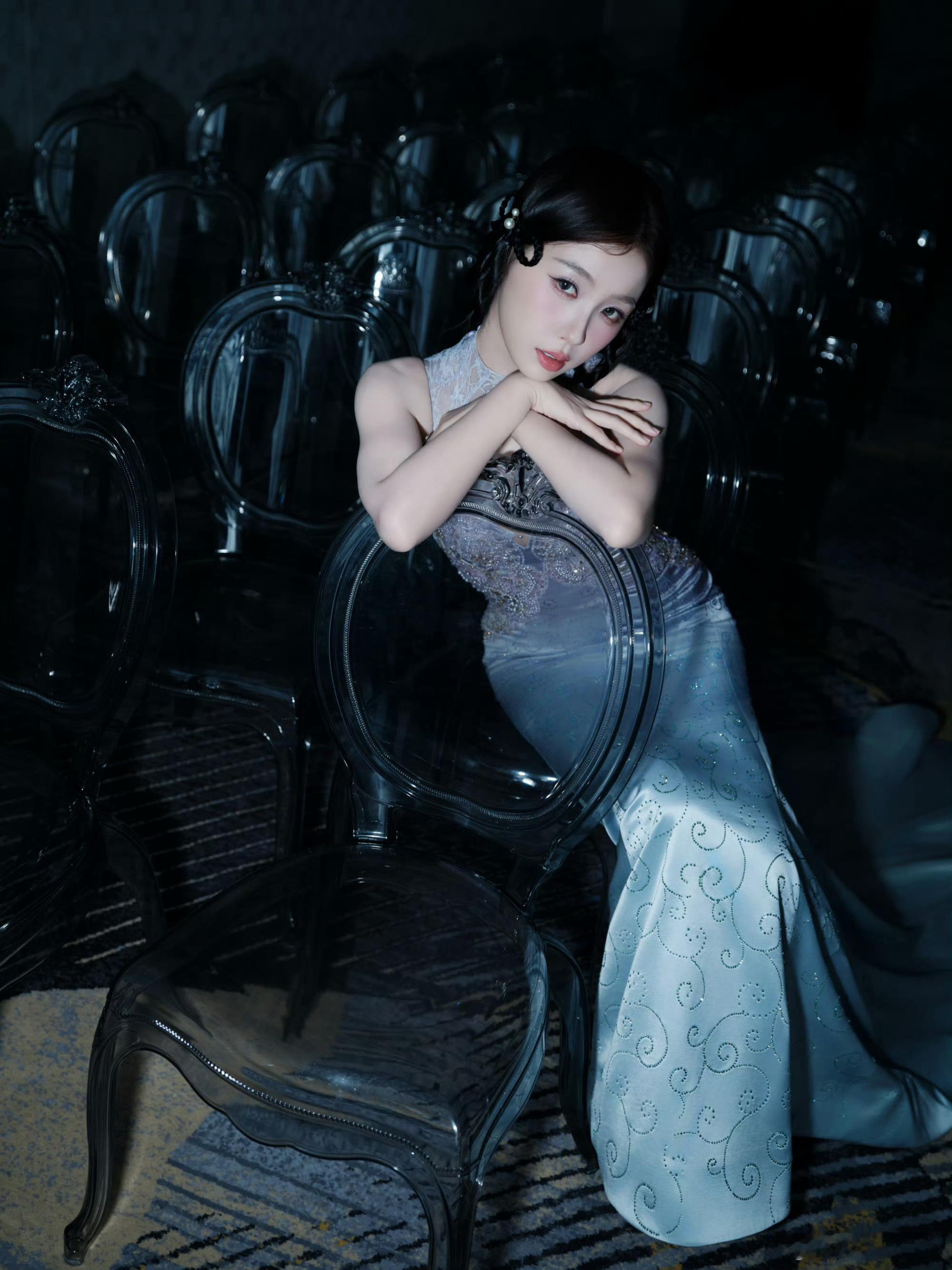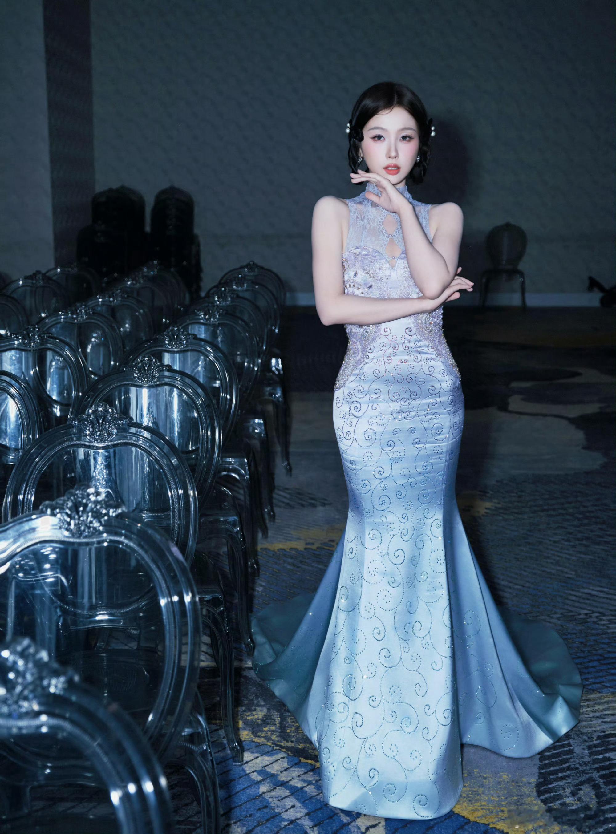 虞书欣新中式鱼尾裙虞书欣一袭新中式淡紫鱼尾裙也太惊艳了!紫雾裙摆缀满星光绣纹,
