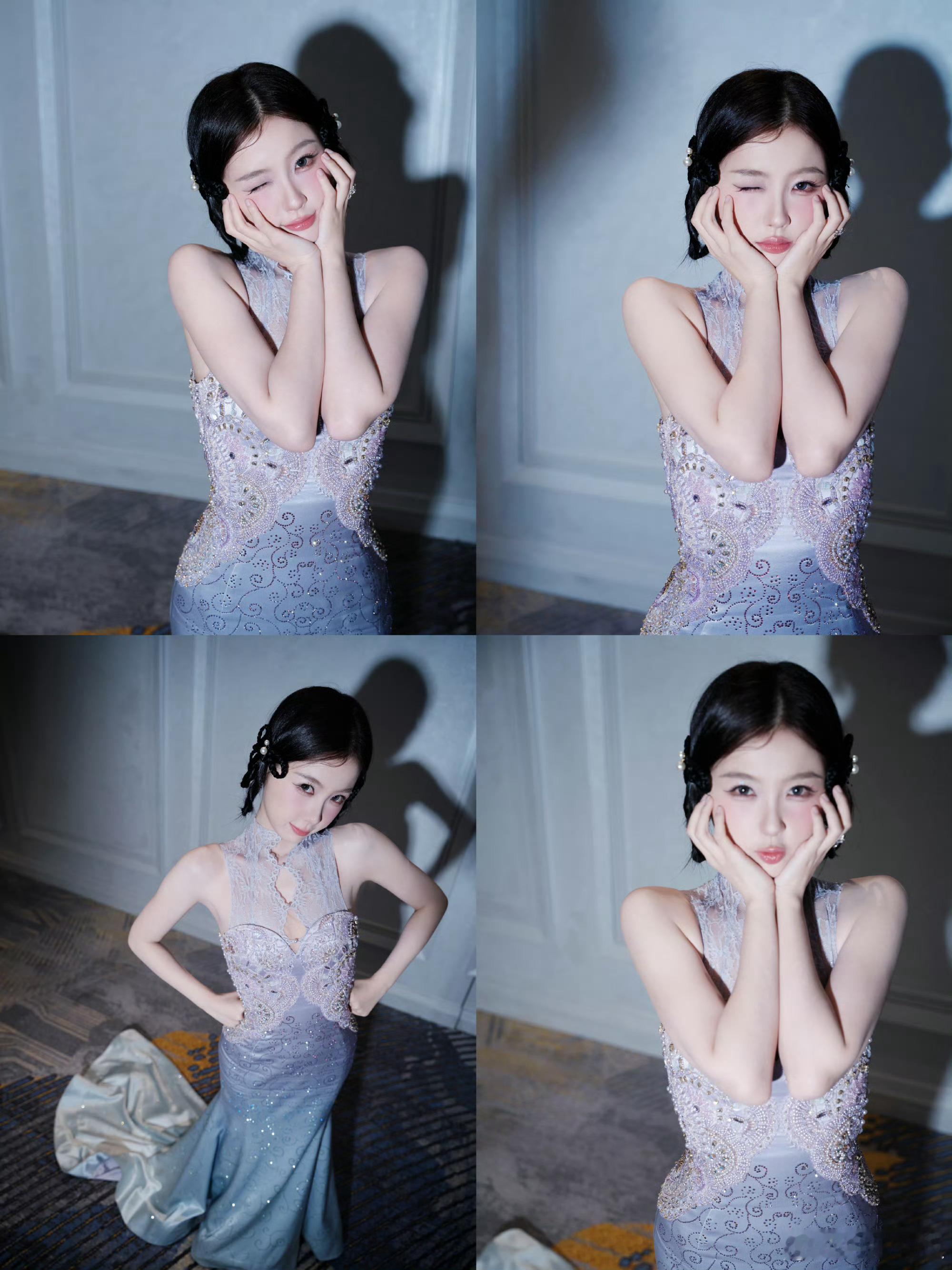 虞书欣新中式鱼尾裙 虞书欣一袭新中式淡紫鱼尾裙也太惊艳了!紫雾裙摆缀满星光绣纹,