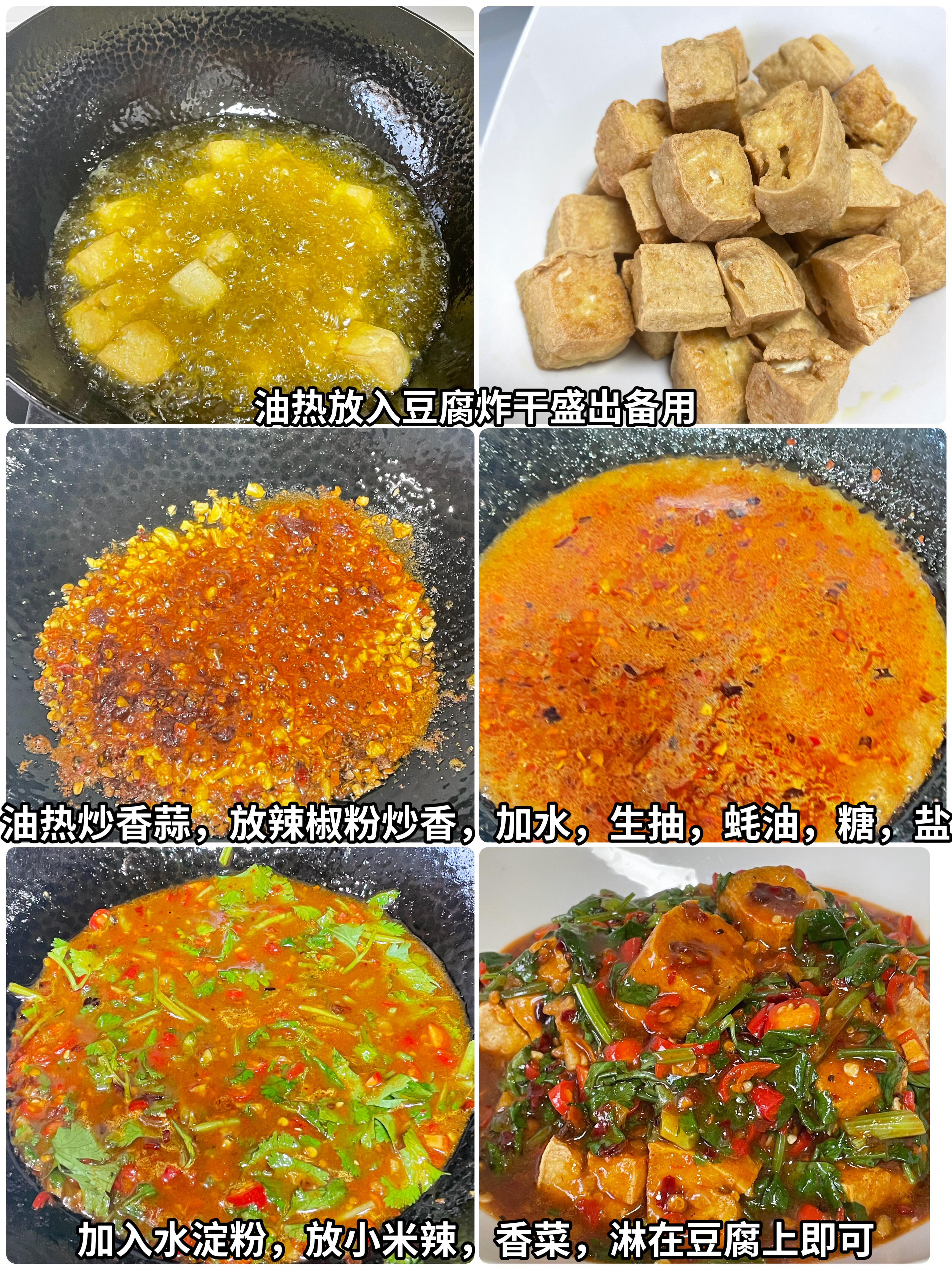 夜市同款浇汁豆腐!脆香入味,一口复刻小摊味 家人们谁懂啊!终于在家复刻出夜市小摊的浇汁豆腐了!一口封神! 外脆里嫩的老豆腐,裹上浓稠挂汁的灵魂酱汁,一口下去,是豆腐的焦香酥脆与绵密内里的碰撞,再加上辣椒的鲜辣和香菜的清香,香气在舌尖肆意蔓延,鲜到上头,欲罢不能,完全就是记忆里夜市的味道,香到舔盘! 重点是做法巨简单,没有复杂技巧,不用高超厨艺,厨房小白跟着做也能零翻车,喜欢这口的姐妹,一定要试试,轻松实现夜市浇汁豆腐自由~ 🍢【家常必备食材】 老豆腐、蒜末、辣椒粉、孜然粉、小米辣、香菜、生抽、蚝油、糖、盐、鸡精、水淀粉、食用油(食材常见,菜市场随手就能买到,不用特意囤货) ✅【夜市同款做法,一步不踩雷】 1️⃣ 先处理豆腐:把买回的老豆腐切成大小均匀的方块,尽量切得厚实一点,这样炸出来外脆里嫩,不易碎;起锅烧油,油热后放入豆腐块,中小火慢慢炸,炸至表面金黄酥脆,捞出沥干油分备用 2️⃣ 调灵魂浇汁:锅里留少许底油,开小火,放入提前准备好的蒜末,慢慢炒出蒜香,接着加入辣椒粉和孜然粉,继续翻炒几下,炒出香料的浓郁香味 3️⃣ 往锅里加入适量清水,再放入适量生抽、蚝油、少许糖、盐和鸡精,搅拌均匀,开大火煮至沸腾,然后倒入一碗水淀粉,转小火慢慢熬制,边熬边搅拌,直到汤汁变得浓稠 4️⃣ 最后放入切好的小米辣和香菜段,搅拌均匀,关火;把熬好的浓稠料汁,均匀淋在炸好的豆腐块上,就可以直接开吃啦! 救命!真的太香了!外脆里嫩的豆腐,吸满了浓稠鲜香的料汁,鲜辣中带着孜然的独特香味,还有香菜的清爽解腻,每一口都戳中味蕾,完全复刻夜市小摊味,好吃到停不下来! 做法简单还省时,不用费太多功夫,新手也能轻松拿捏,不用怕翻车,喜欢吃浇汁豆腐、爱吃夜市小吃的姐妹,一定要安排上,在家就能实现小吃自由