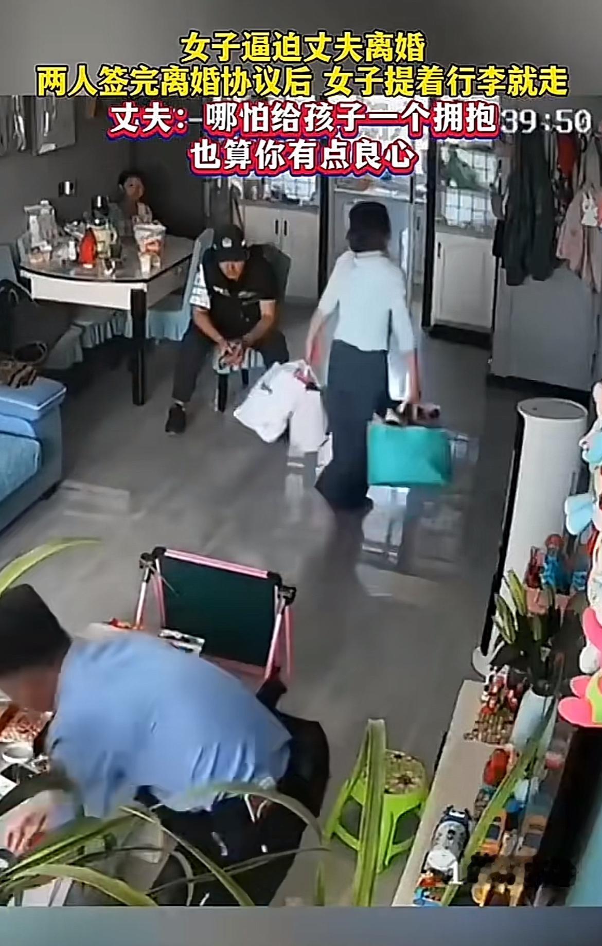 这场景看着真让人心寒。女子如此决绝,逼着丈夫离婚,还报警见证签协议,然后头也不回地收拾行李走人,连孩子都不看一眼。孩子就坐在沙发上,那小小的身影该多无助啊。婚姻走到这一步,或许有很多矛盾和无奈,但孩子是无辜的。她这么做,也许是对婚姻失望透顶,可孩子是她身上掉下来的肉啊。这不仅伤害了丈夫,更在孩子心里留下深深的创伤。真希望成年人在处理感情问题时,多考虑考虑孩子的感受,别让孩子成为婚姻破碎的牺牲品。